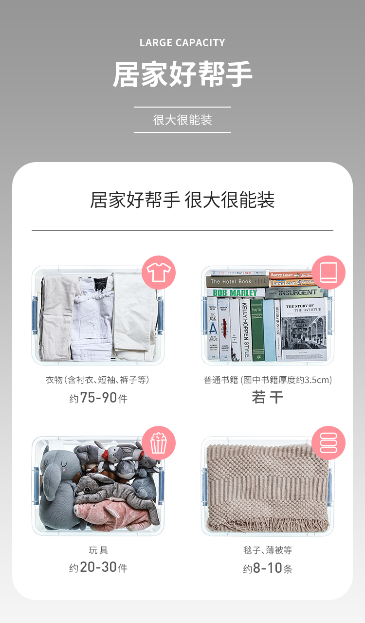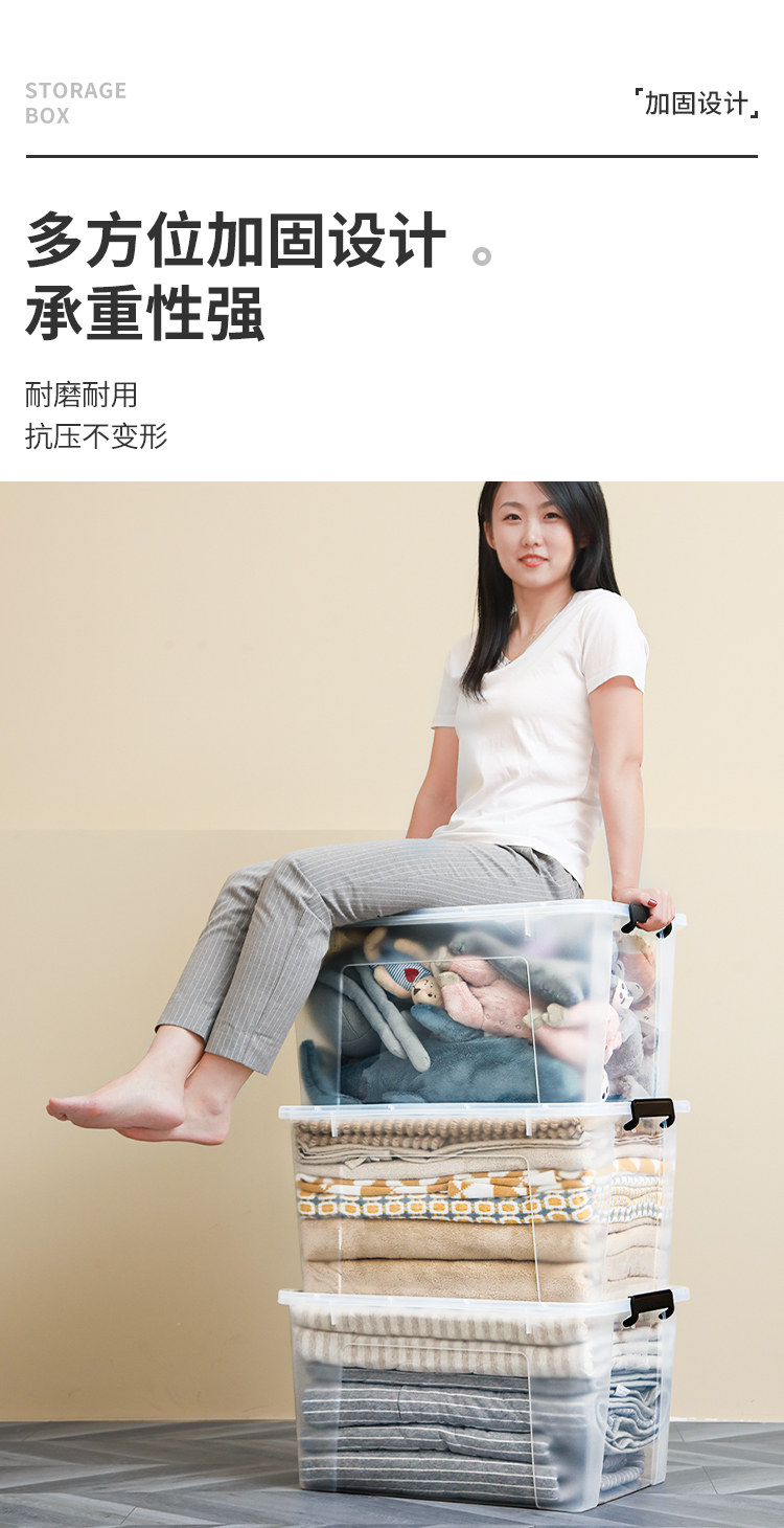 禧天龙 衣物被子收纳箱 透明 65升 1个装