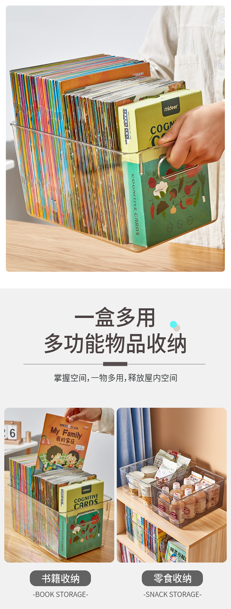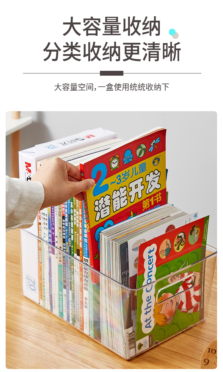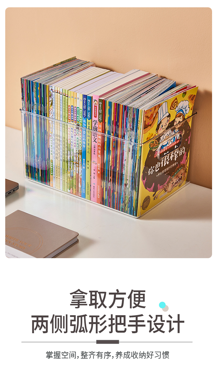 千屿桌面特大号书本收纳盒透明储物整理箱化妆品零食收纳盒玩具杂物收纳筐儿童书架