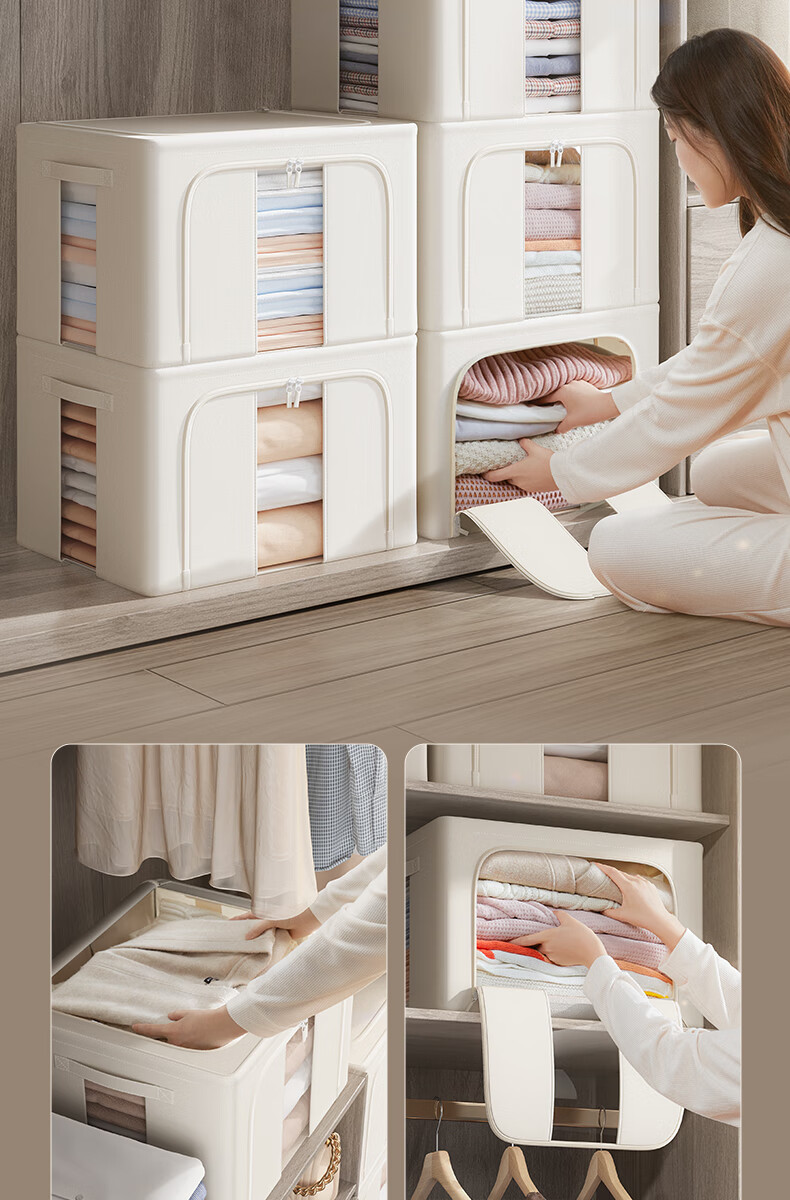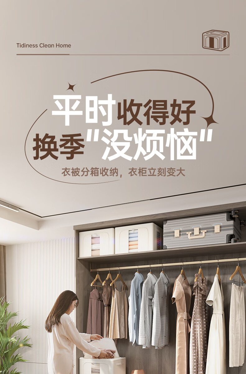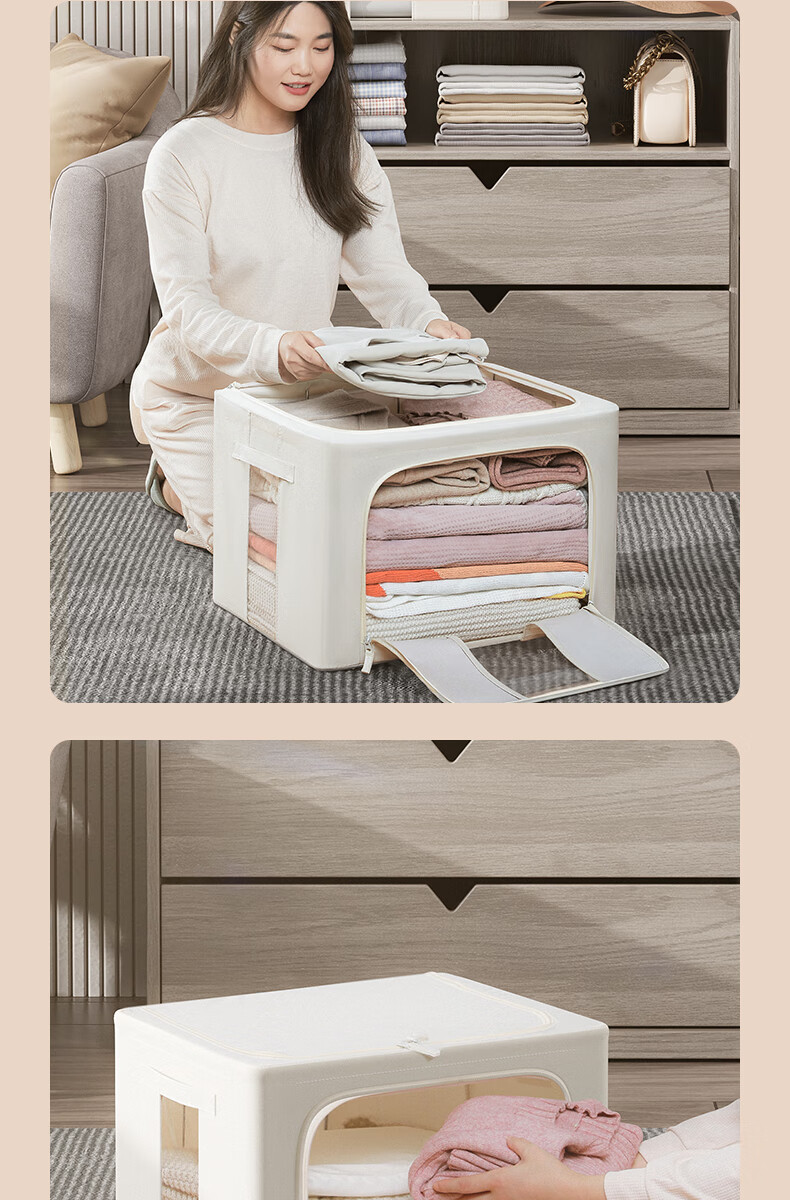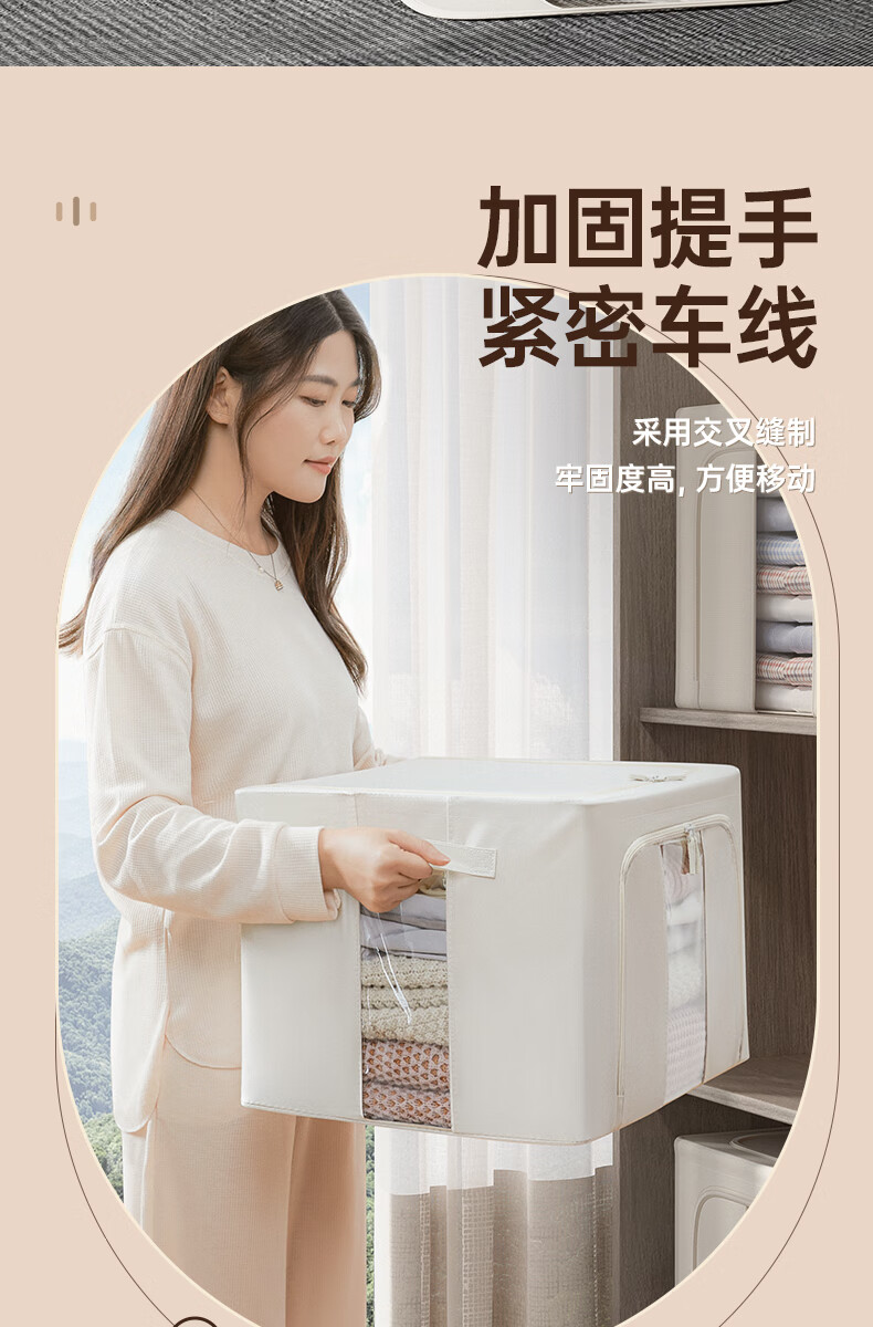 Guiny 衣服收纳箱 衣物棉被加厚整理箱 布艺牛津布可折叠储物箱衣柜搬家箱子玩具被子百纳箱收纳盒 66L
