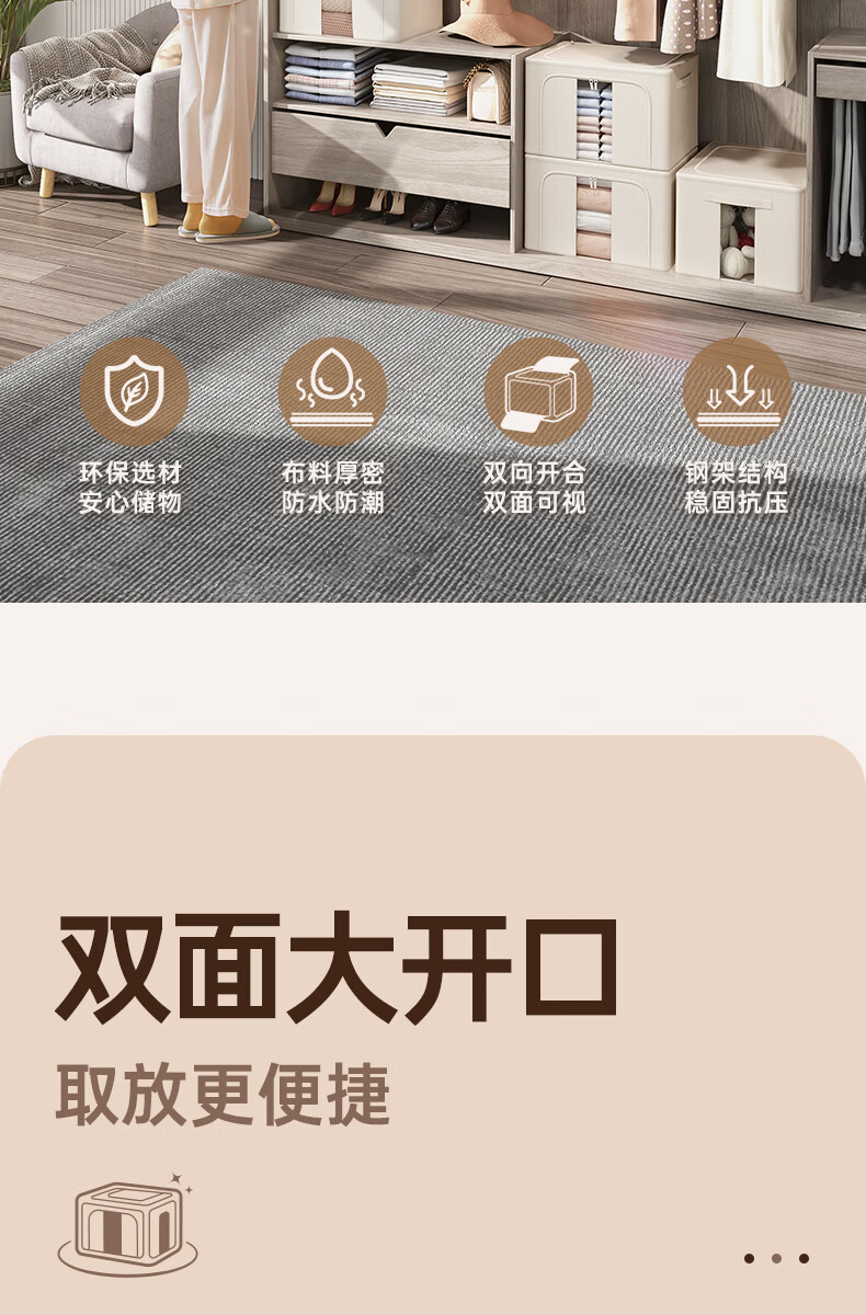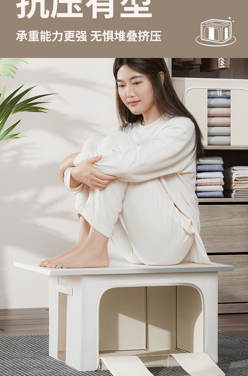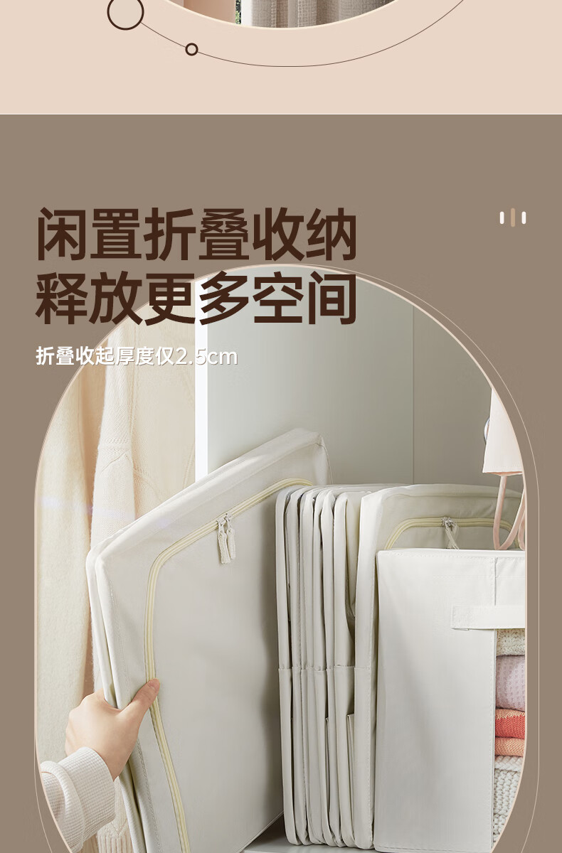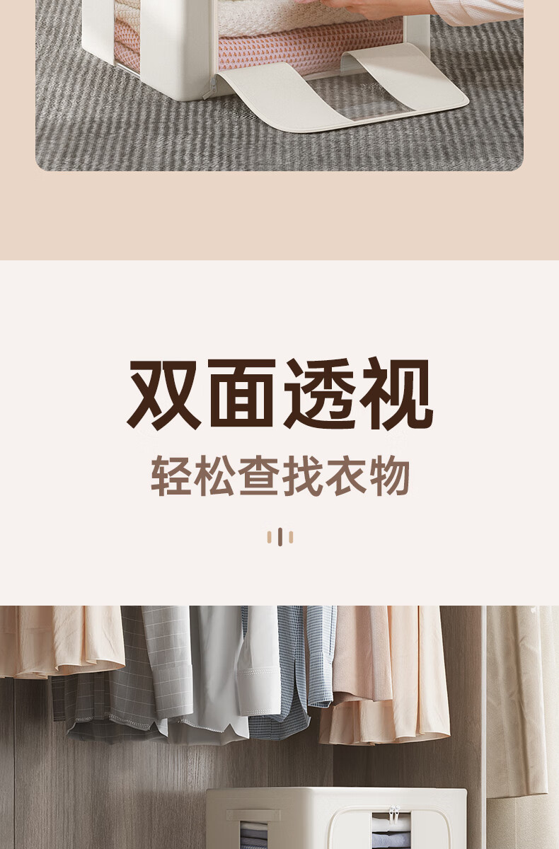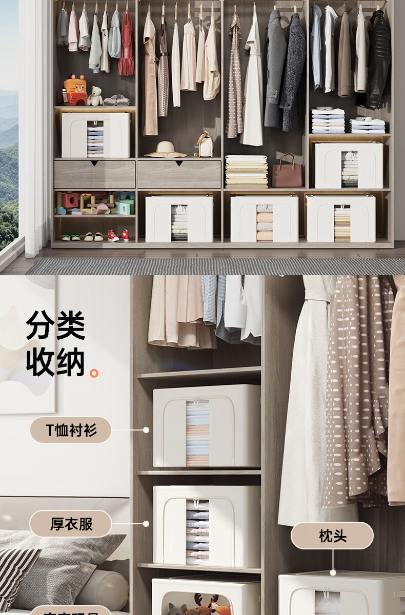 Guiny 衣服收纳箱 衣物棉被加厚整理箱 布艺牛津布可折叠储物箱衣柜搬家箱子玩具被子百纳箱收纳盒 66L