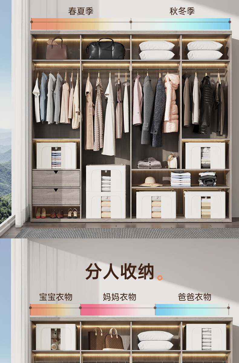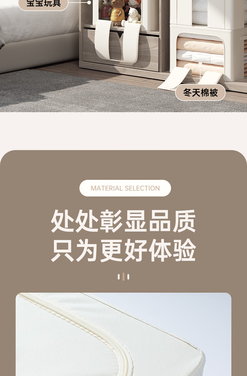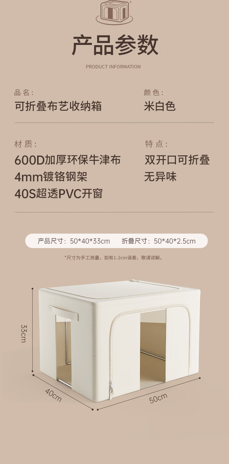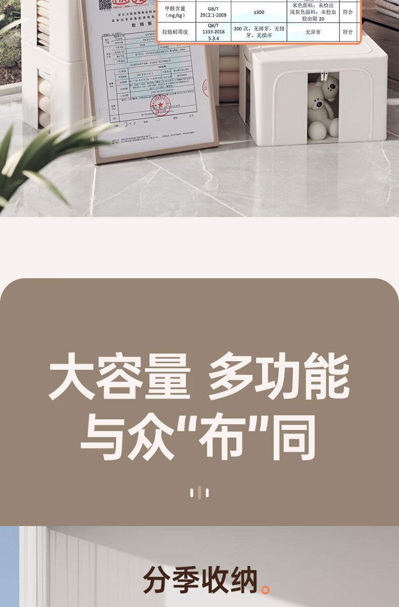 Guiny 衣服收纳箱 衣物棉被加厚整理箱 布艺牛津布可折叠储物箱衣柜搬家箱子玩具被子百纳箱收纳盒 66L