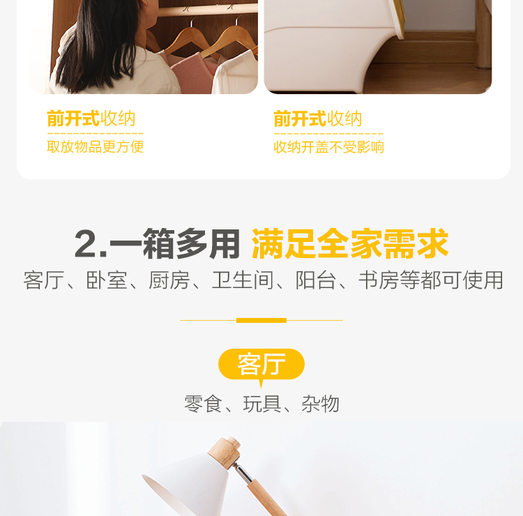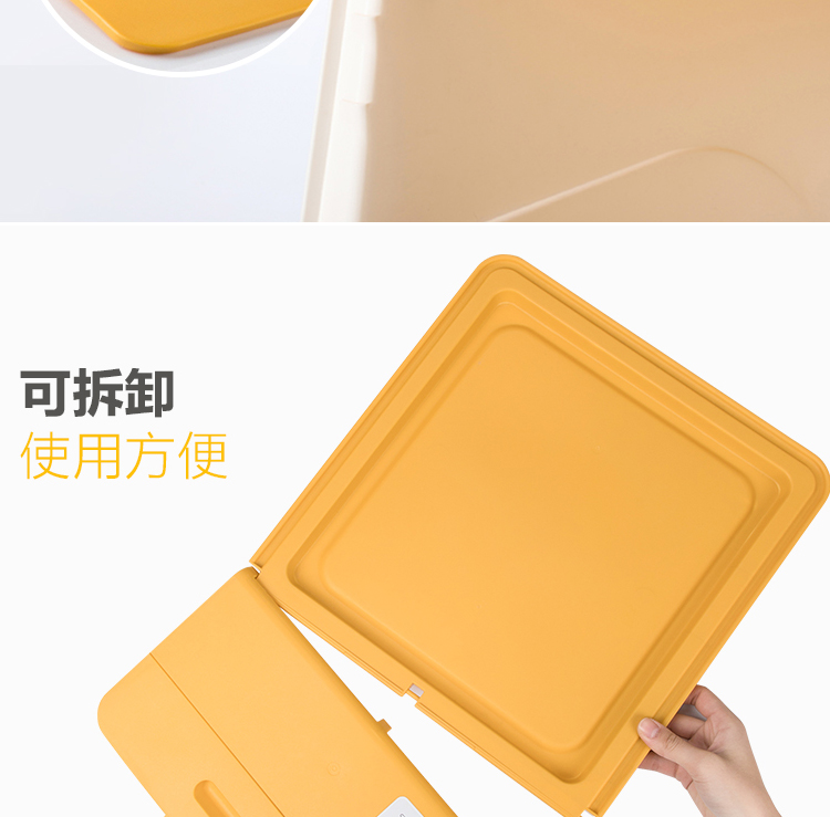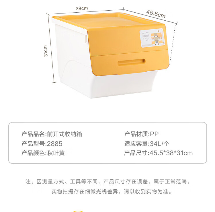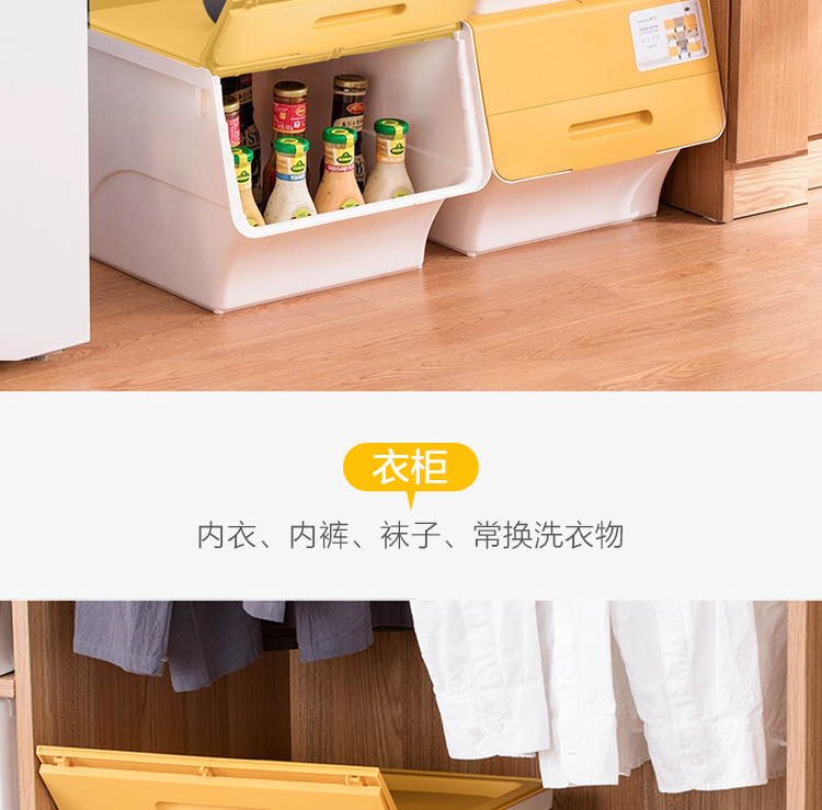 茶花 斜口翻盖收纳箱 衣物玩具收纳盒 衣服整理箱子 河马口前开式塑料箱 内衣储物箱34L 黄色