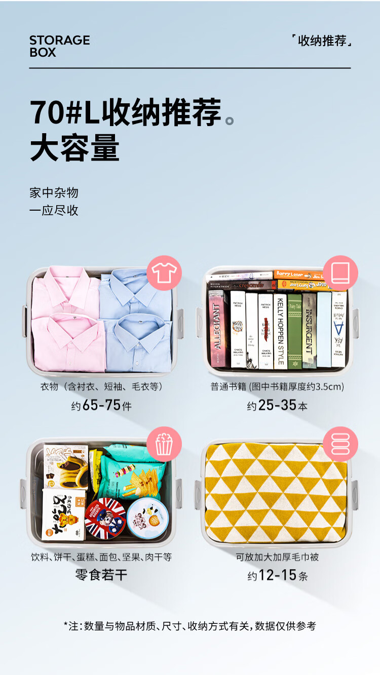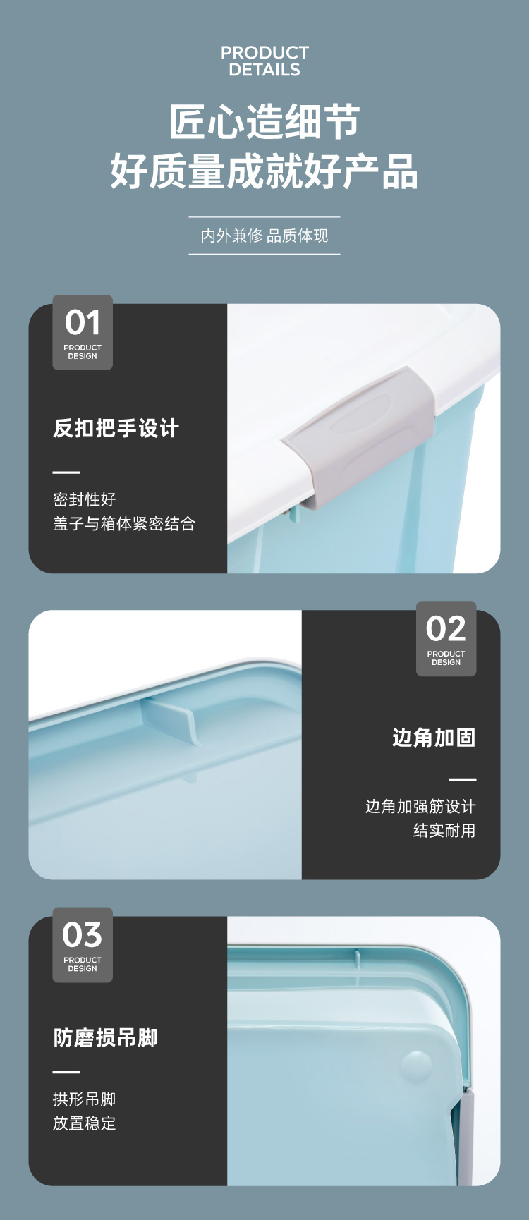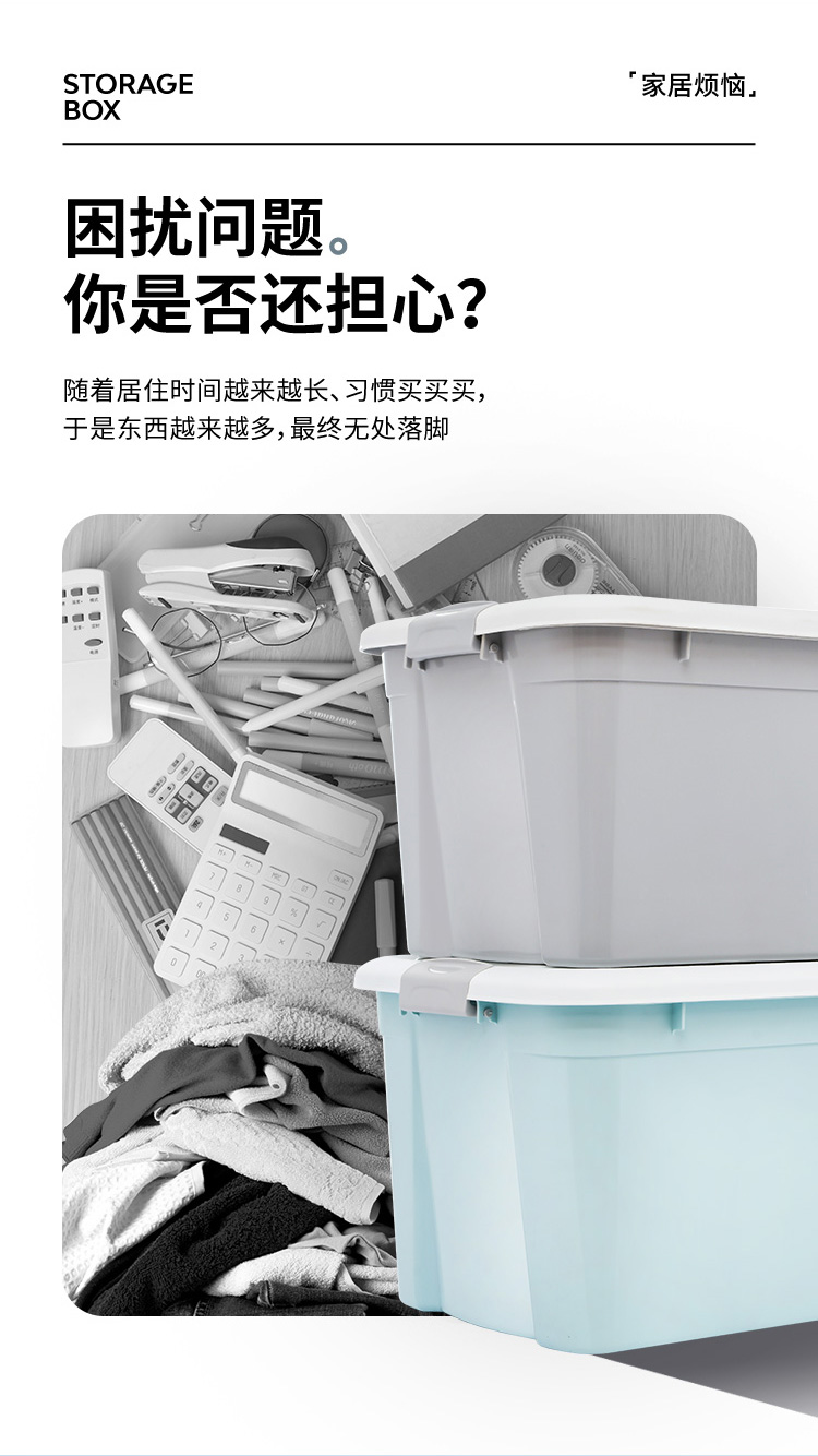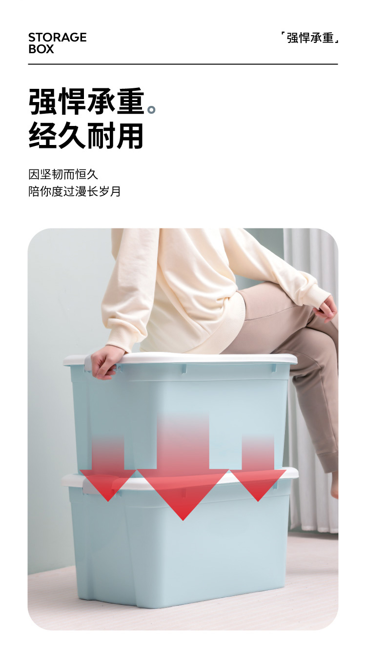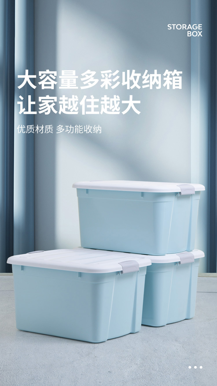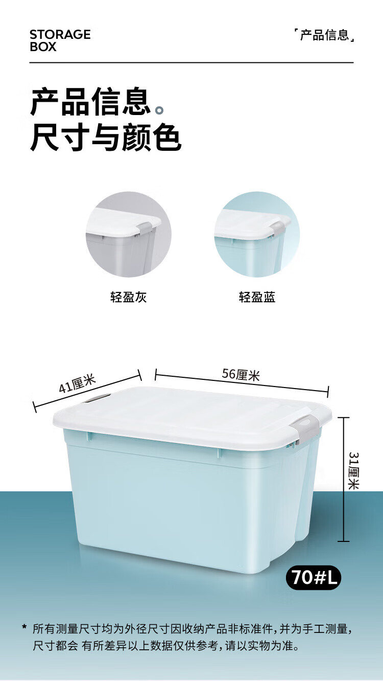 禧仕多 环保加厚抗压塑料收纳箱 蓝色 大号70L一个装