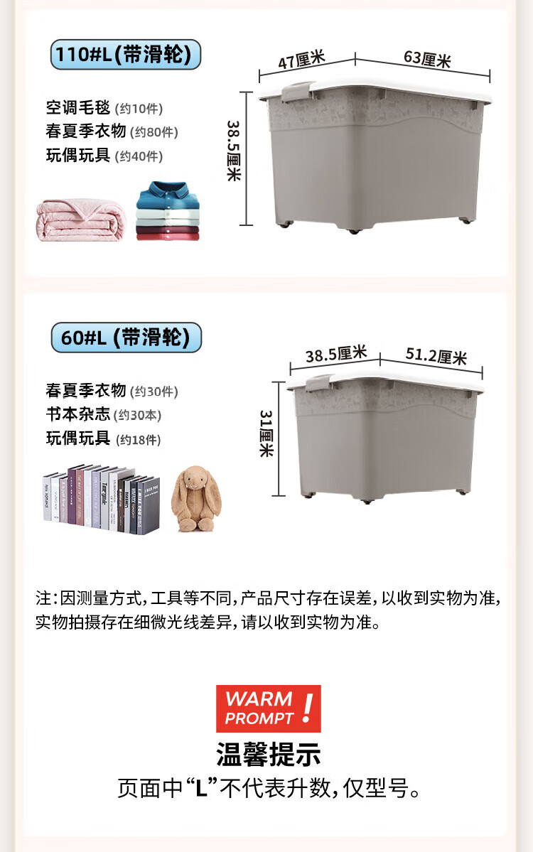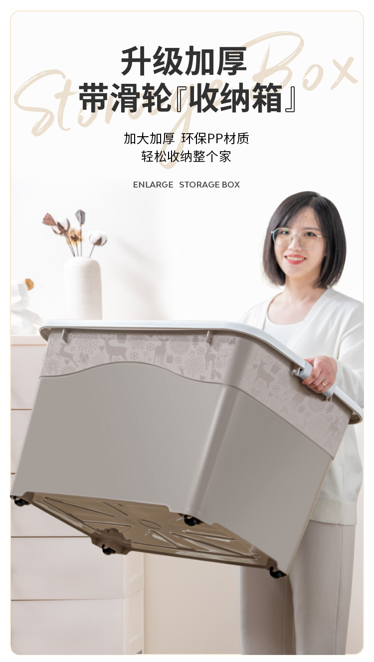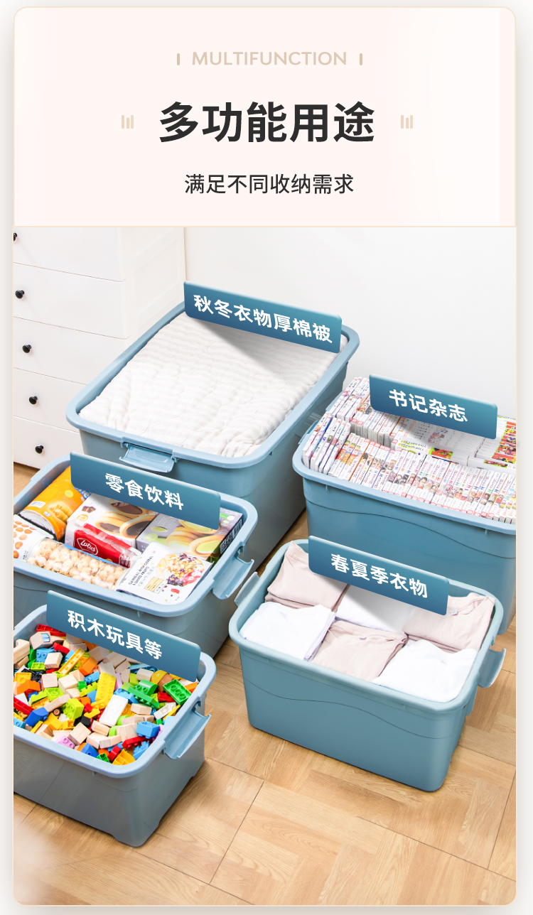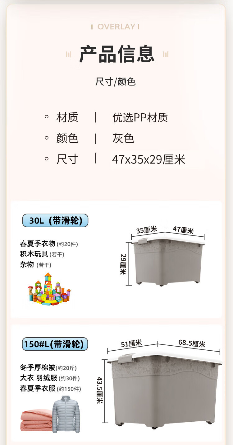禧仕多 环保加厚抗压塑料收纳箱 灰色 30L一个装 衣物整理箱