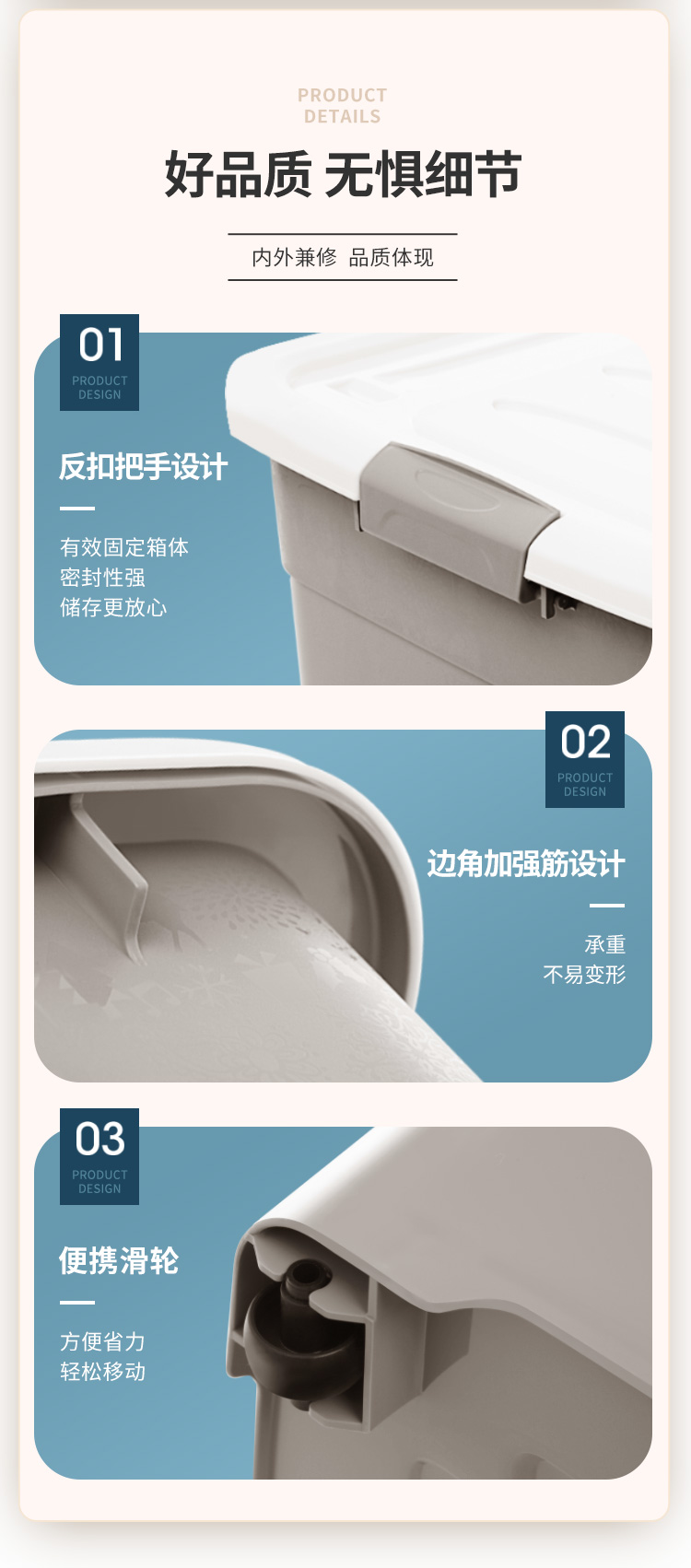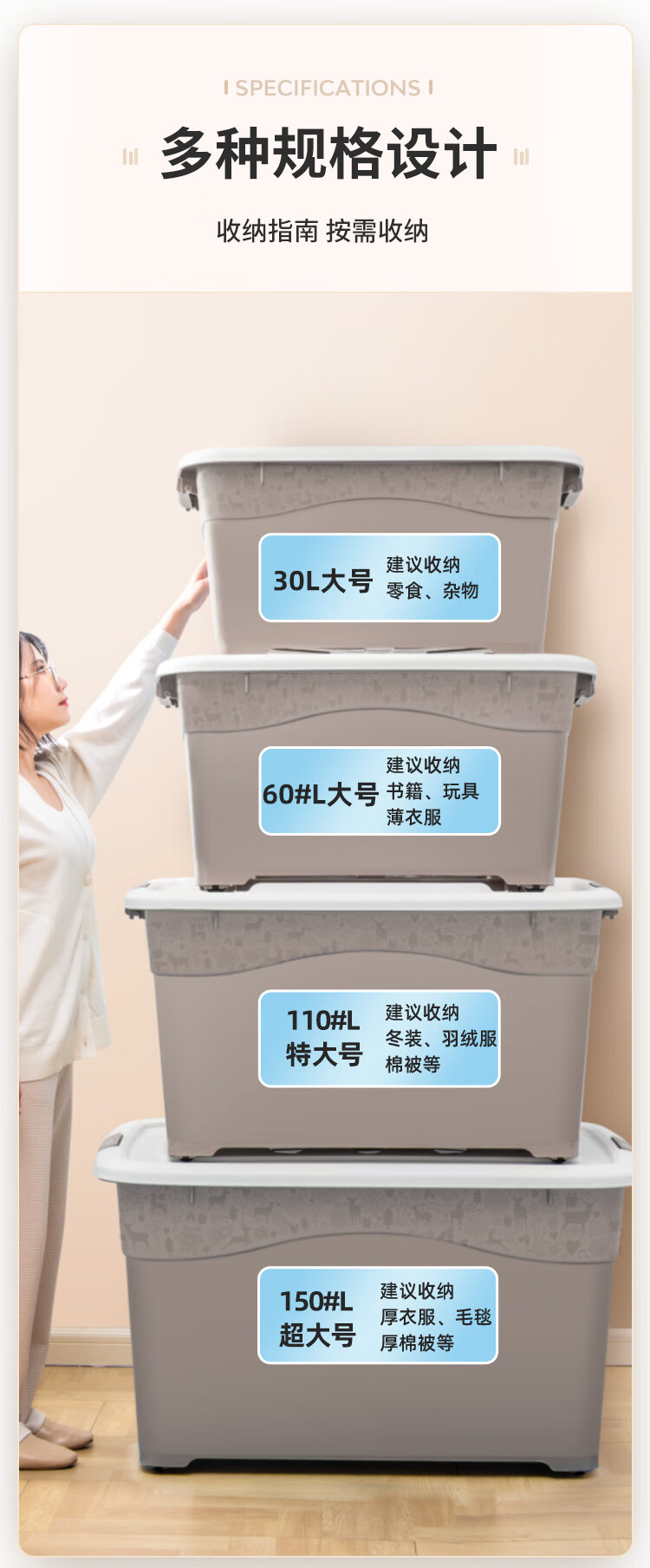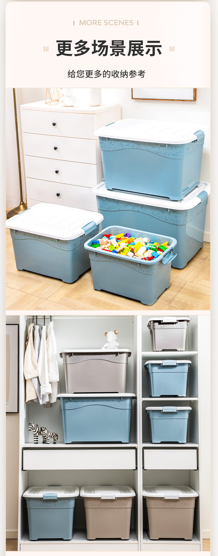 禧仕多 环保加厚抗压塑料收纳箱 灰色 30L一个装 衣物整理箱