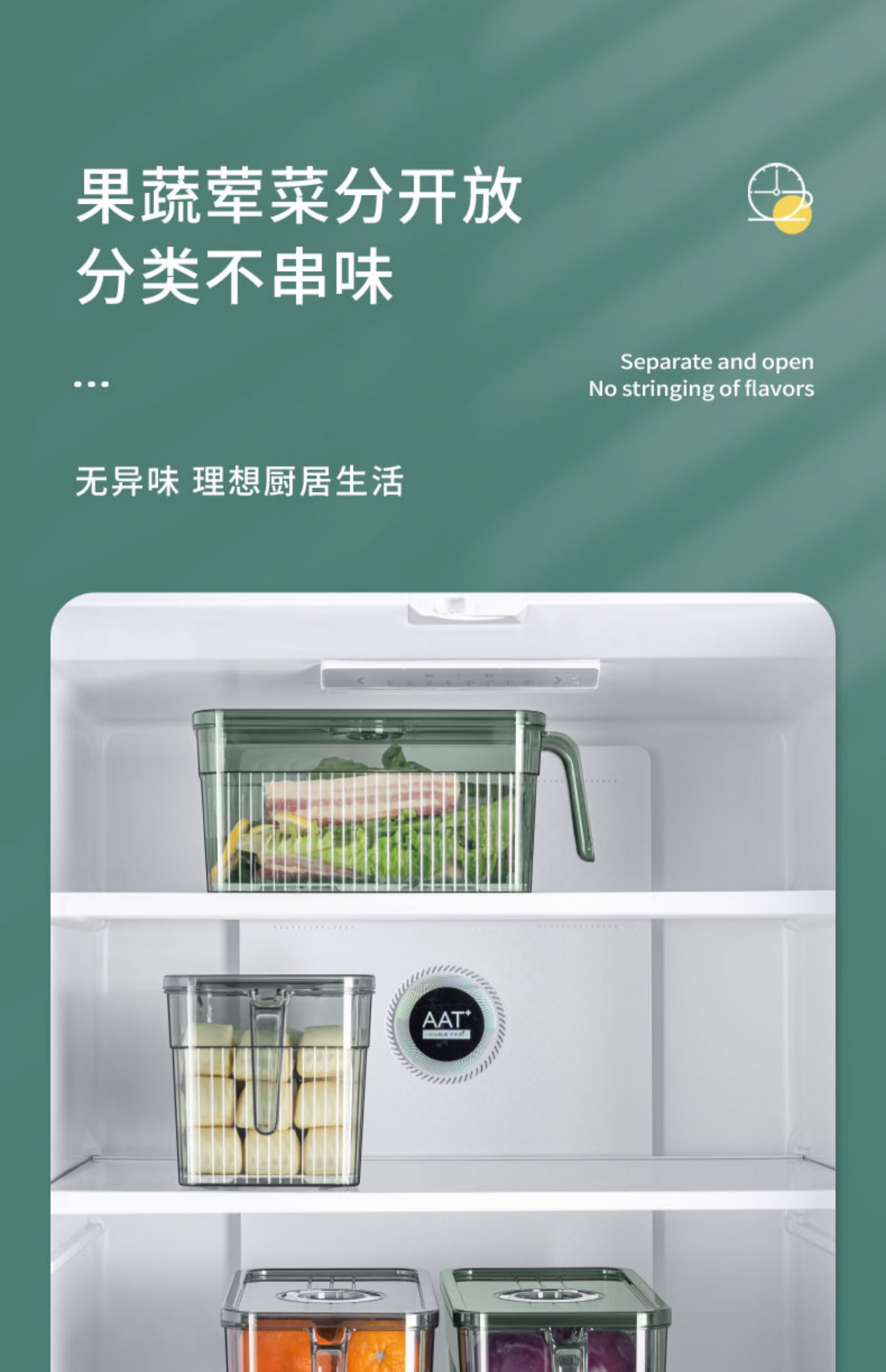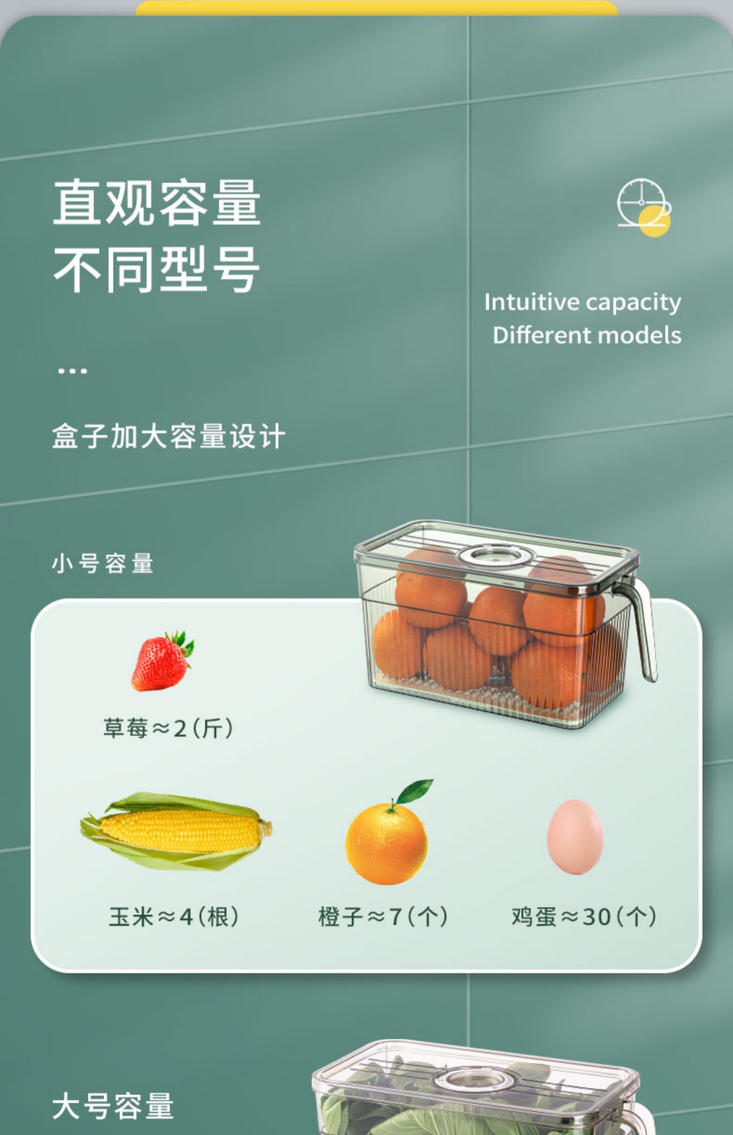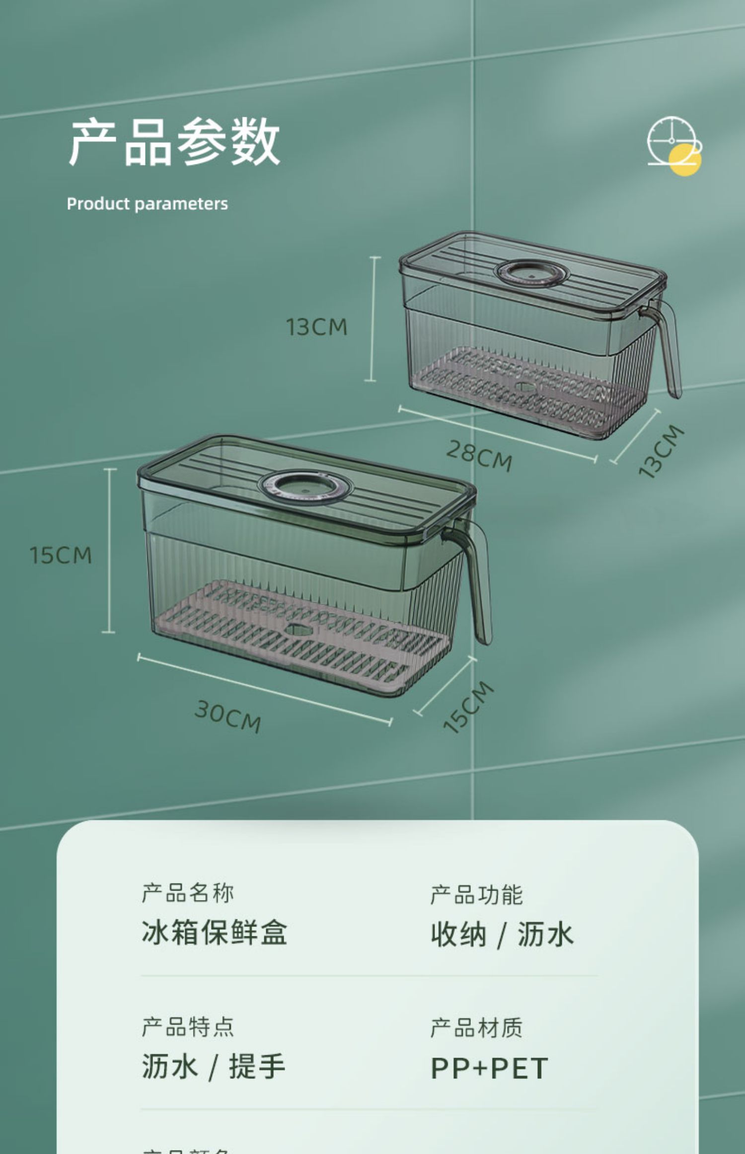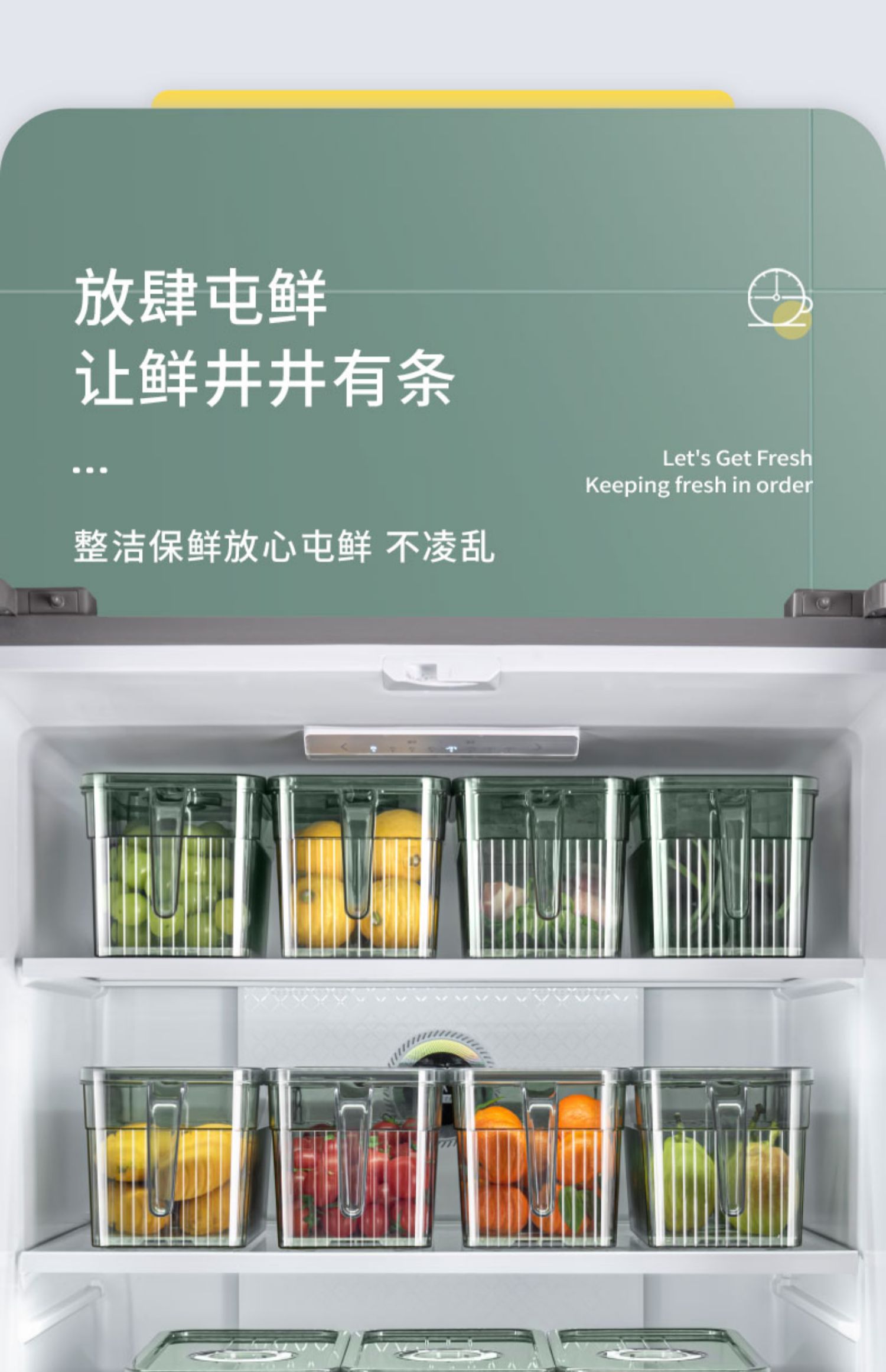 冰箱专用收纳盒带手柄家用厨房蔬菜保鲜盒整理神器透明塑料储物盒