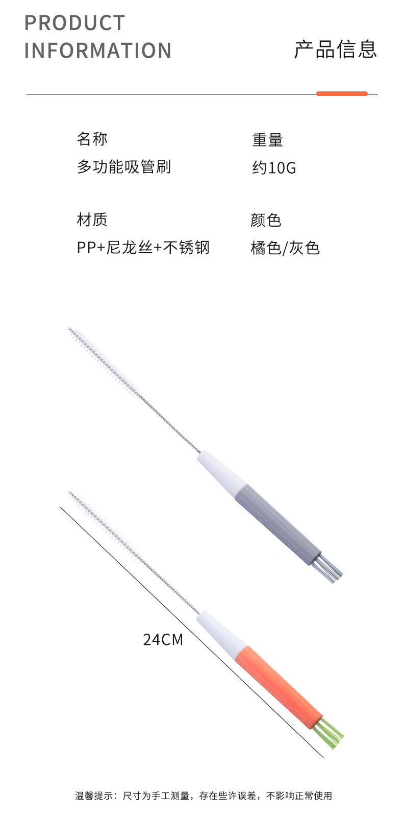 多功能吸管刷清洁奶瓶嘴茶壶嘴清洁刷家用保温杯杯盖缝隙清洗神器