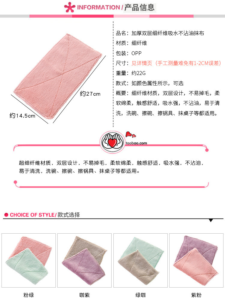 洗碗布吸水不掉毛加厚抹布厨房清洁布不沾油洗碗巾擦地桌布