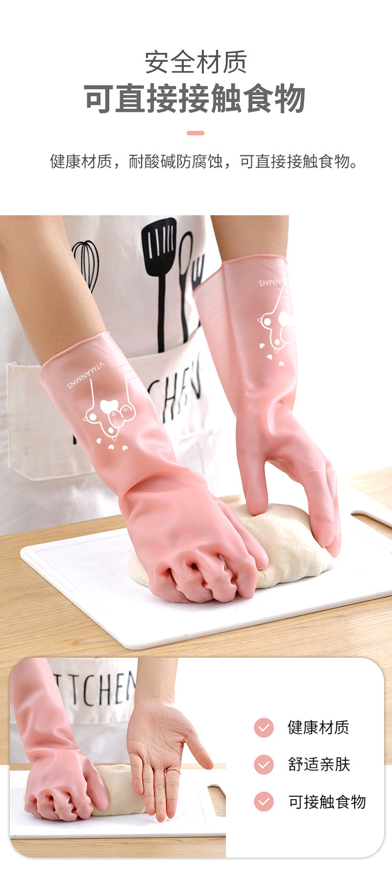家务清洁手套果冻色常规款防滑手套家用厨房清洁家务清理防水手套