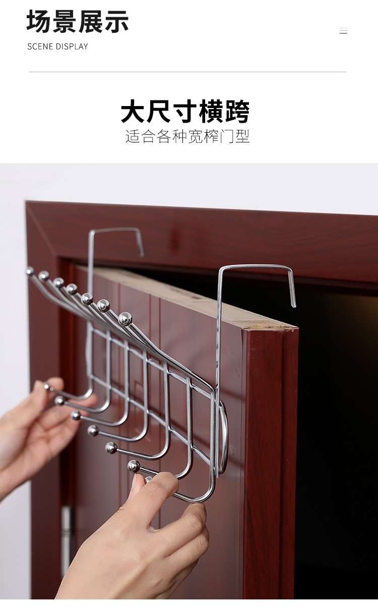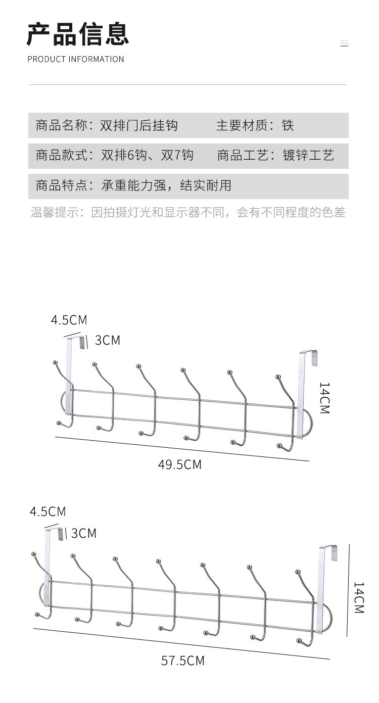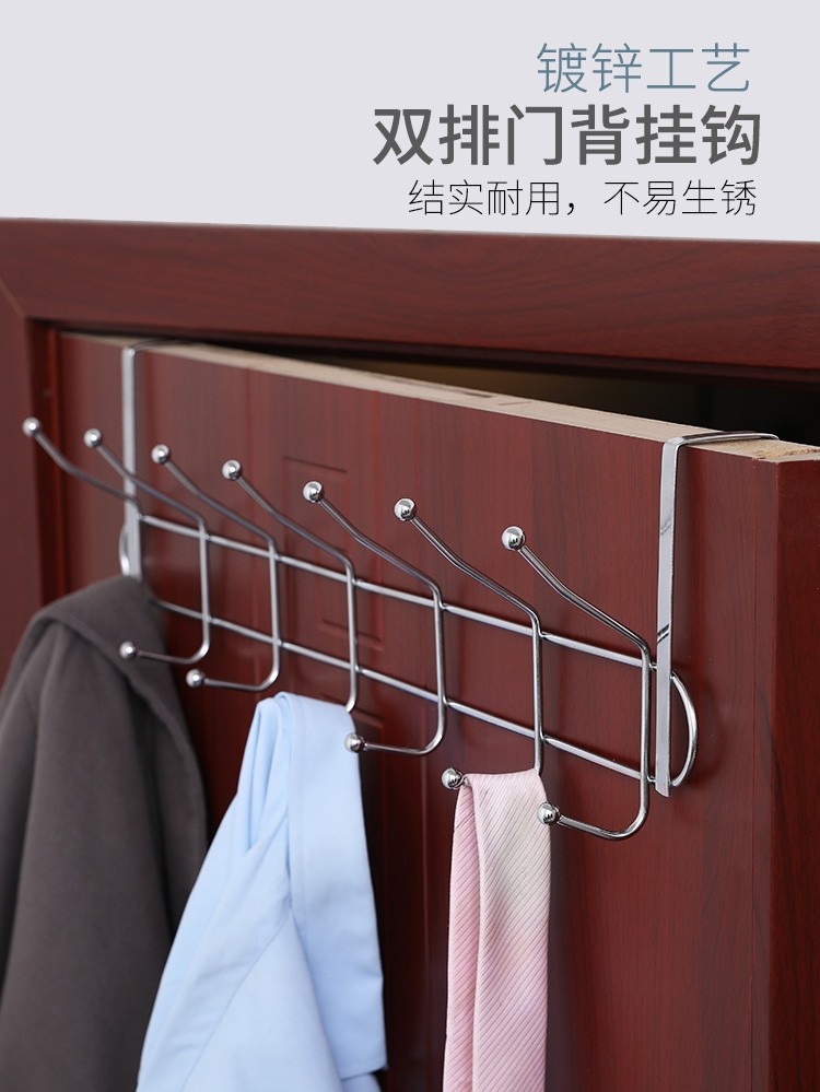 双排不锈钢挂钩卧室门后挂钩挂衣架壁挂墙壁墙上衣服挂钩衣帽钩创意免钉打孔门背式置物架门门后卧室挂衣架