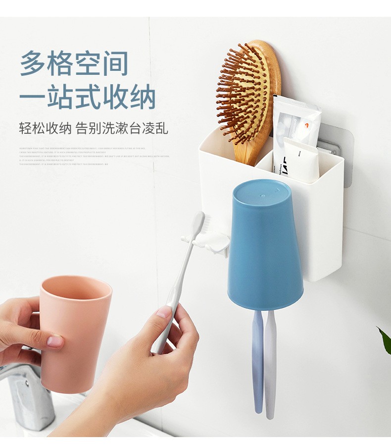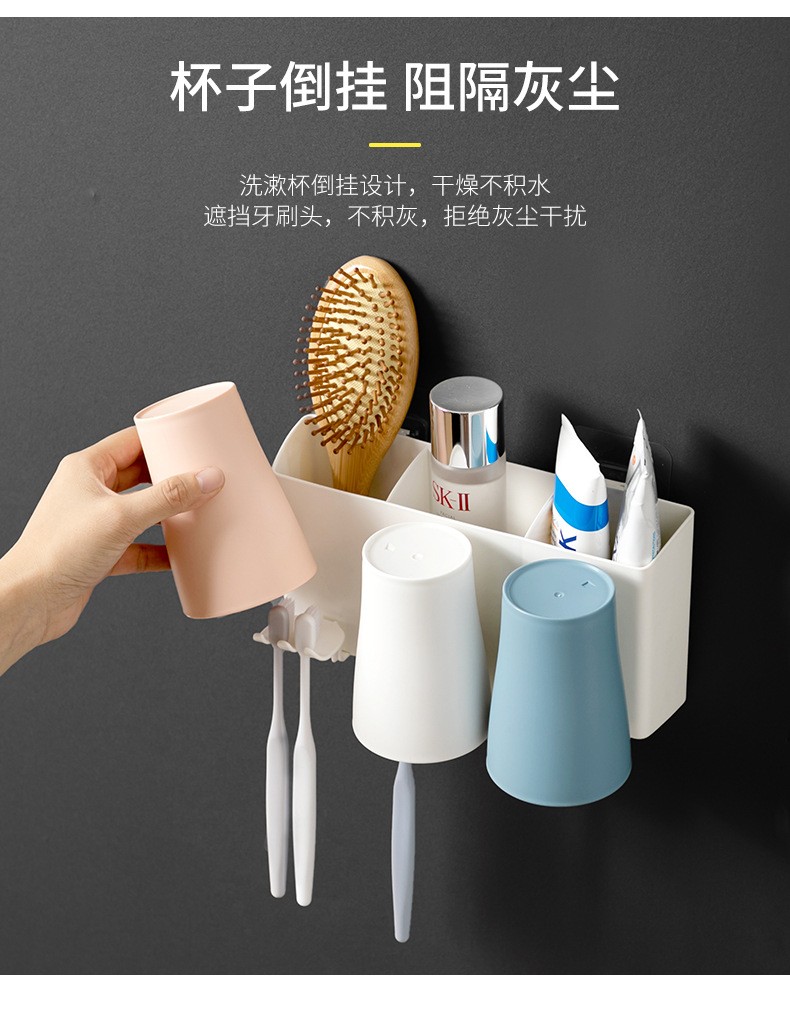 卫生间牙刷置物架牙刷架家用壁挂沥水漱口杯架浴室收纳置物架 白色双杯