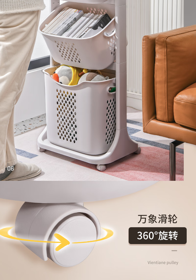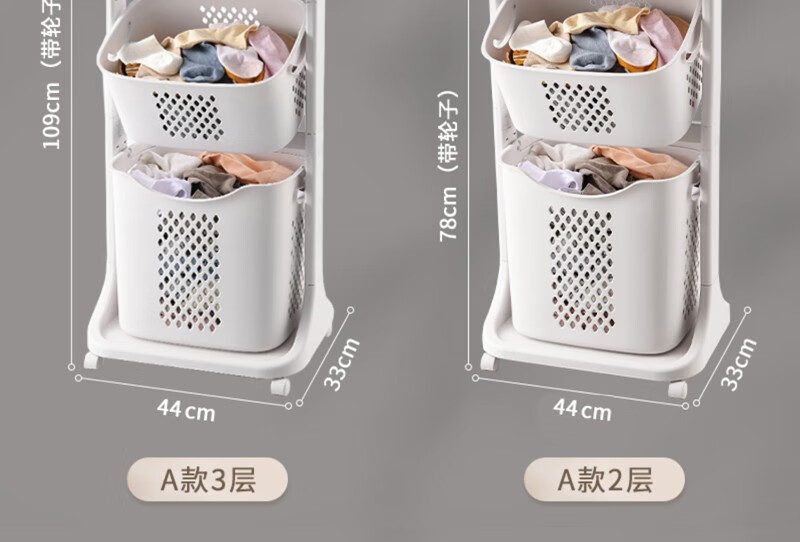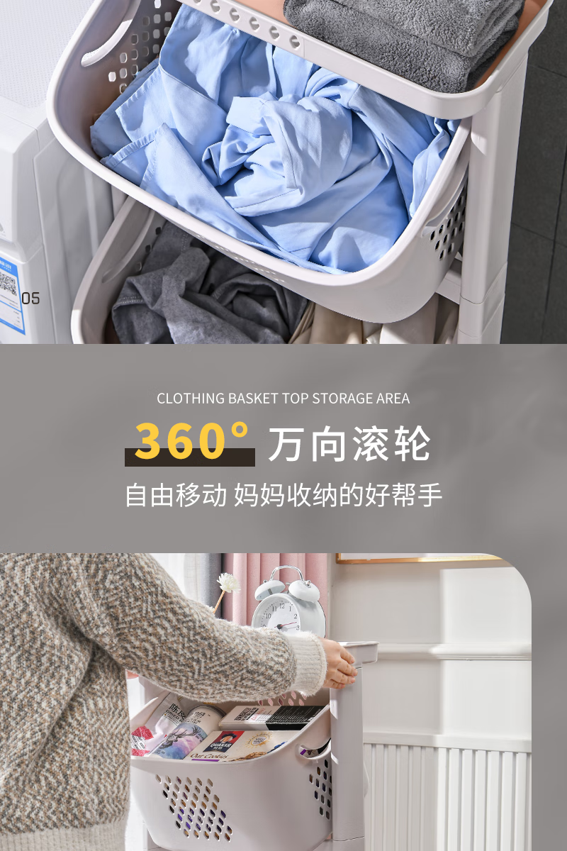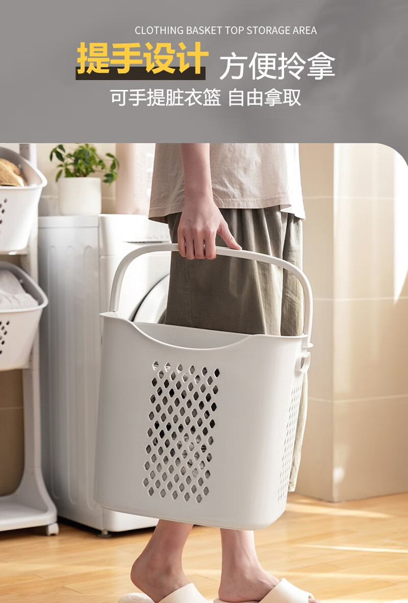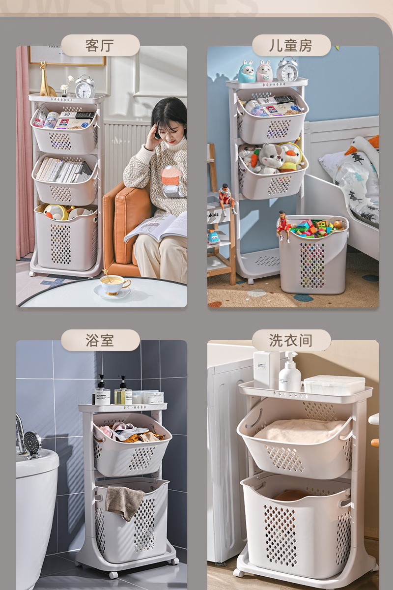 时光旧巷 卫生间脏衣篮置物架带轮脏衣篓浴室多层收纳架可移动分类