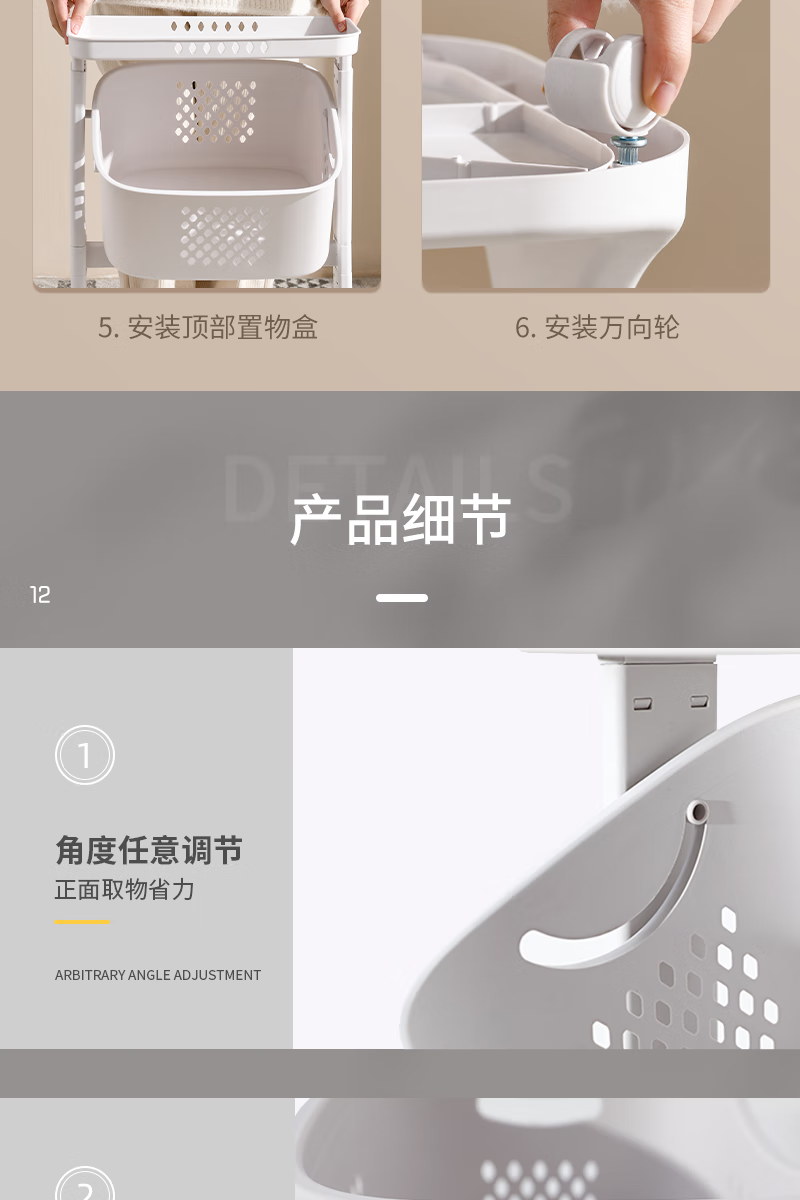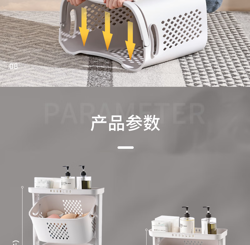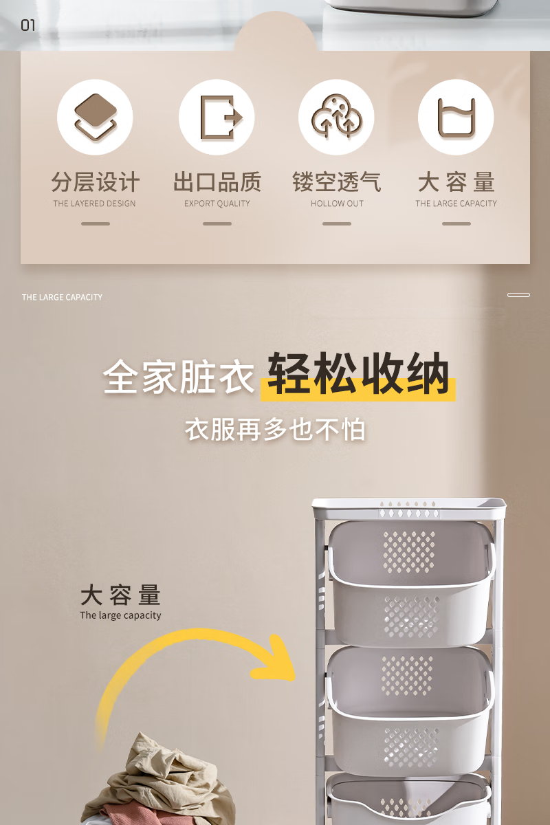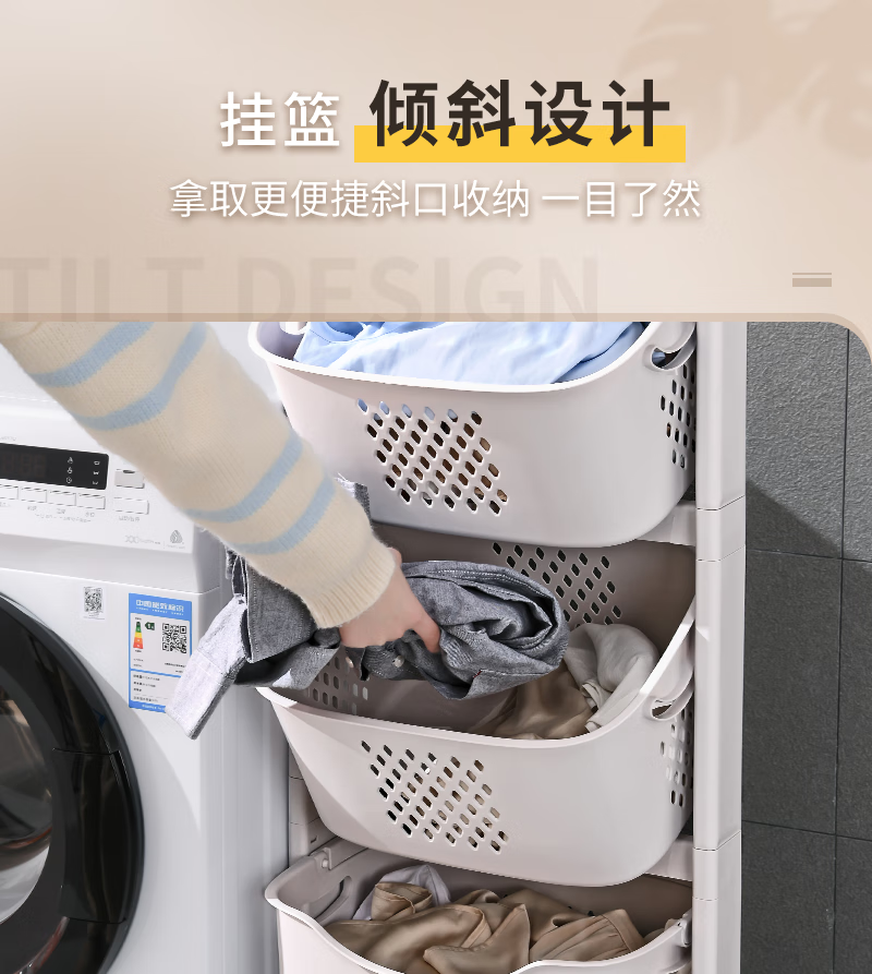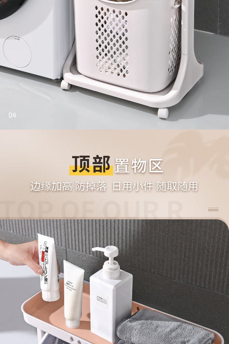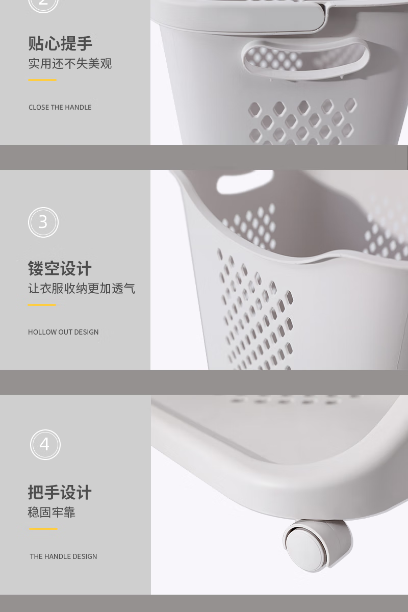 时光旧巷 卫生间脏衣篮置物架带轮脏衣篓浴室多层收纳架可移动分类