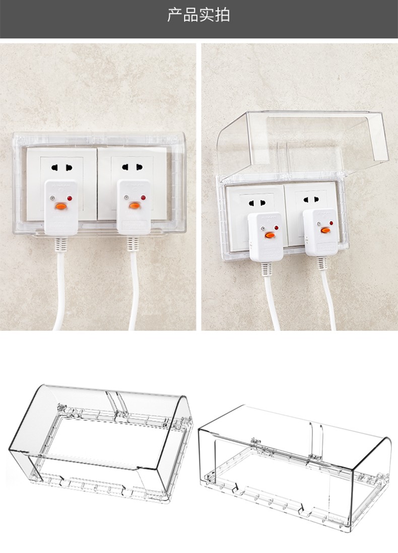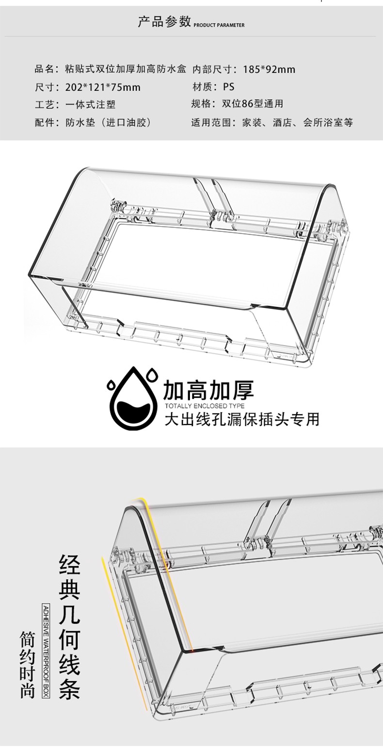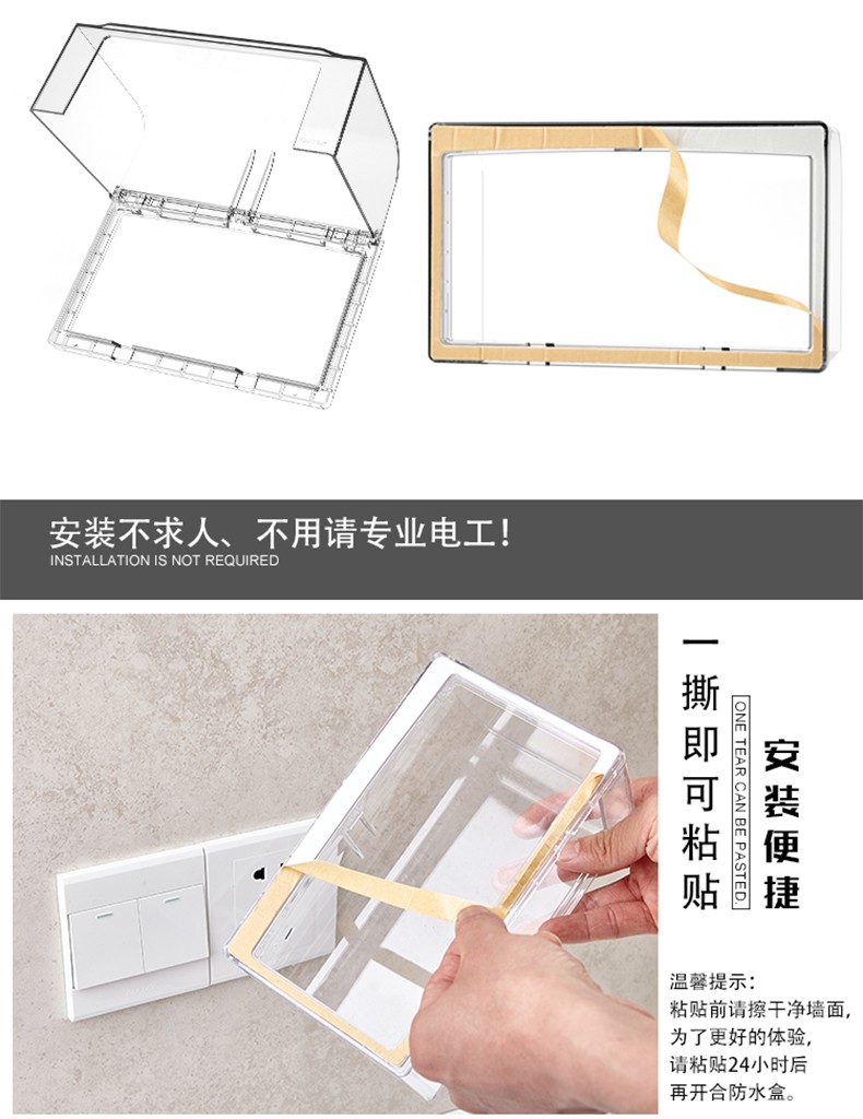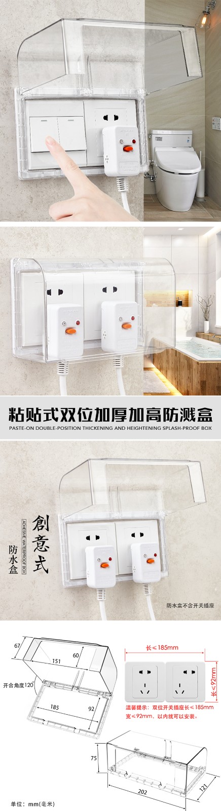 粘胶免打孔粘贴式86型透明插座防水盒 86型浴室开关插座盖挡水防尘盒防溅盒 防水罩