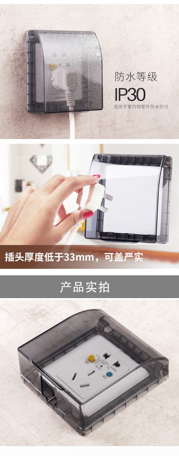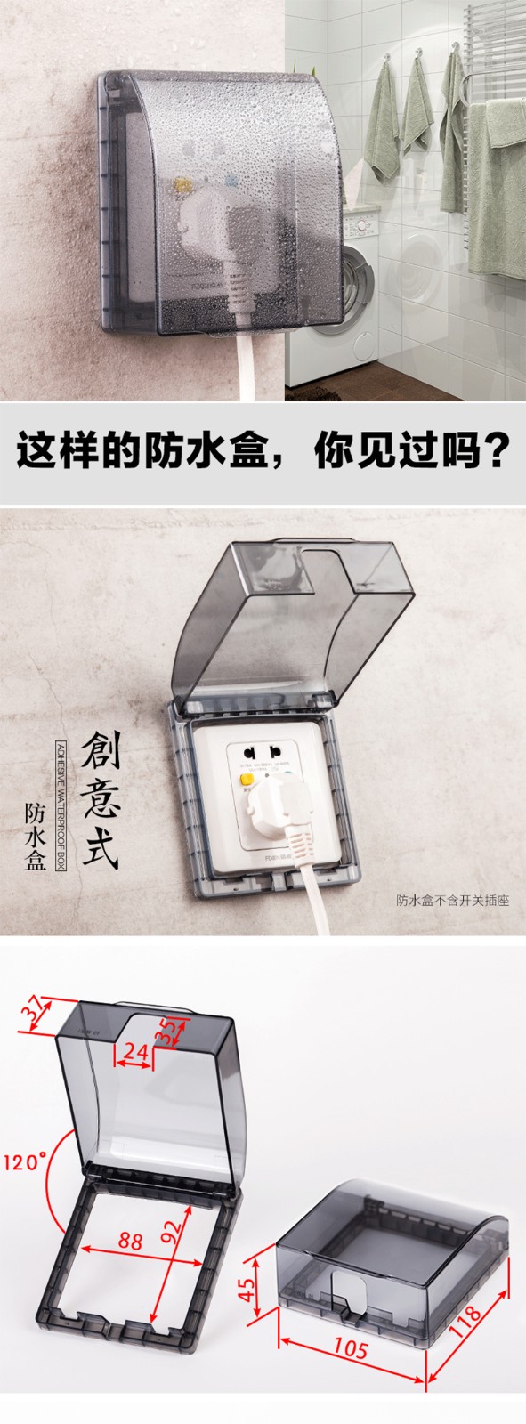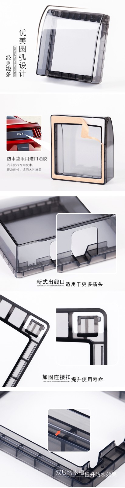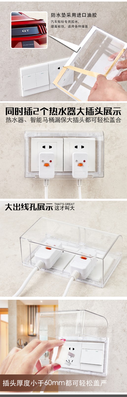 粘胶免打孔粘贴式86型透明插座防水盒 86型浴室开关插座盖挡水防尘盒防溅盒 防水罩