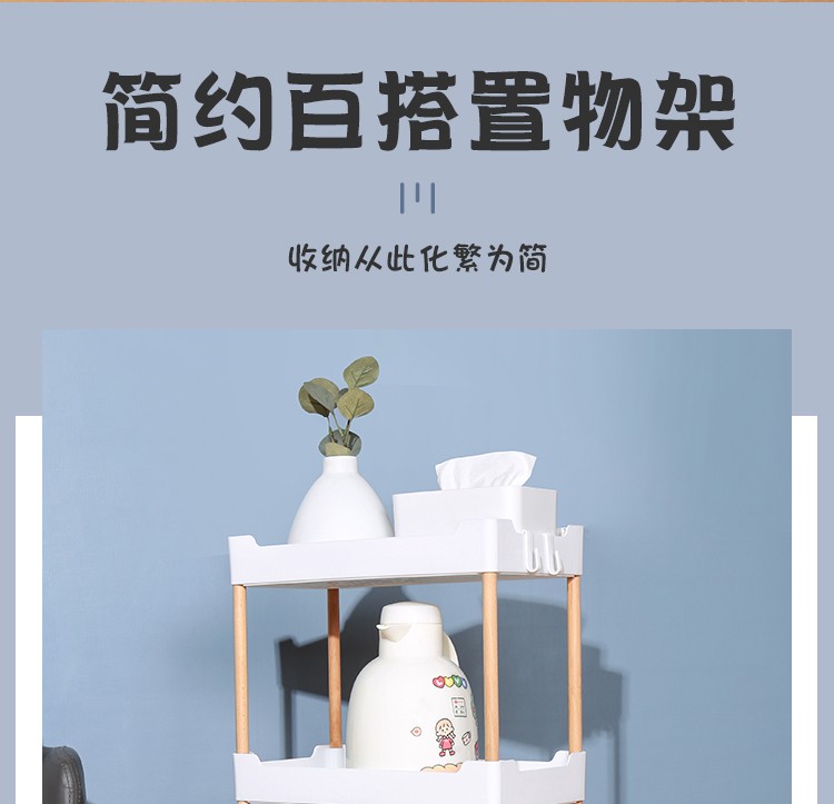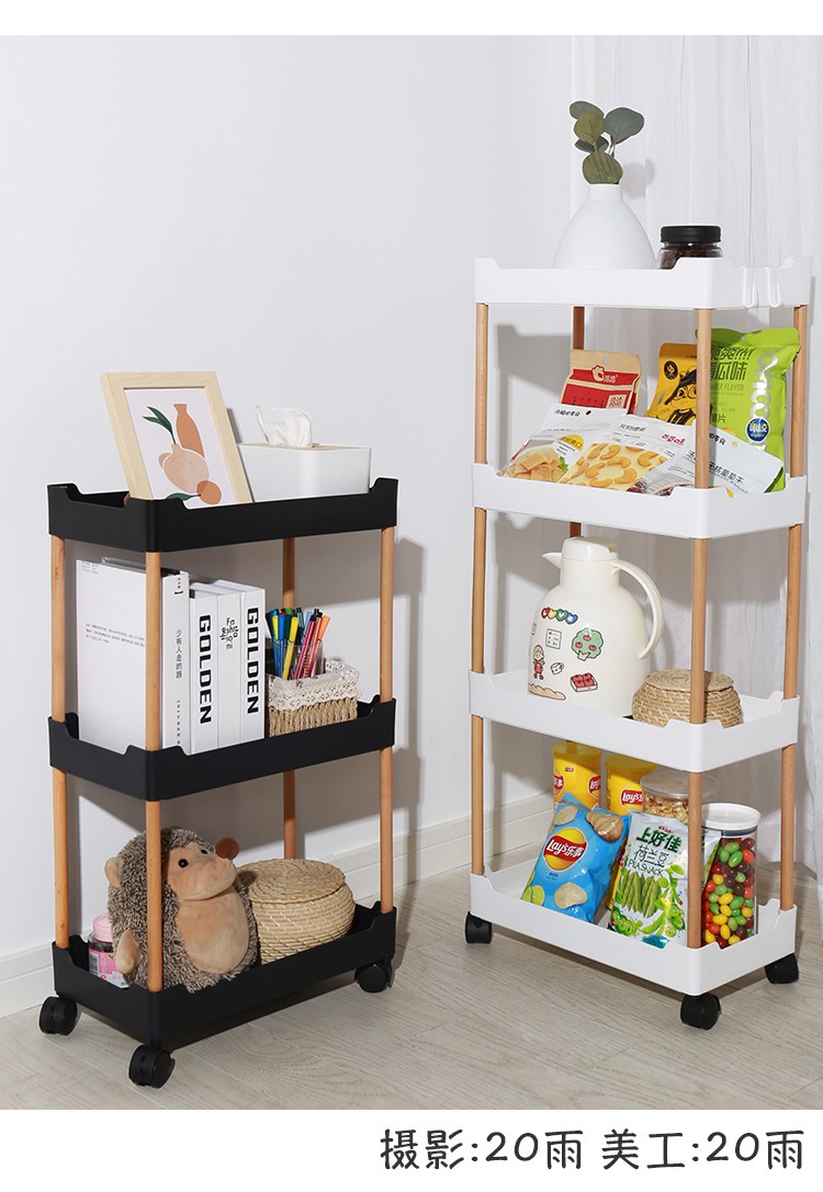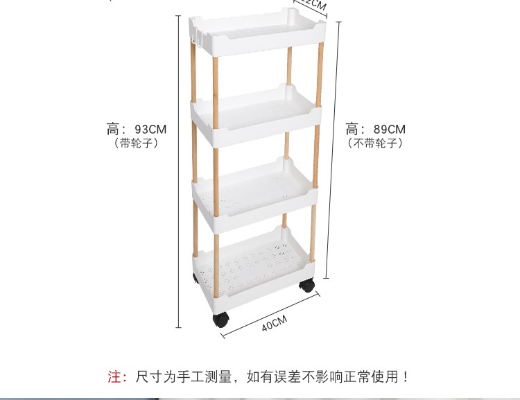 3层置物架木支架款厨房置物架浴室镂空整理架落地多层储物架子可移动小推车带轮收纳架
