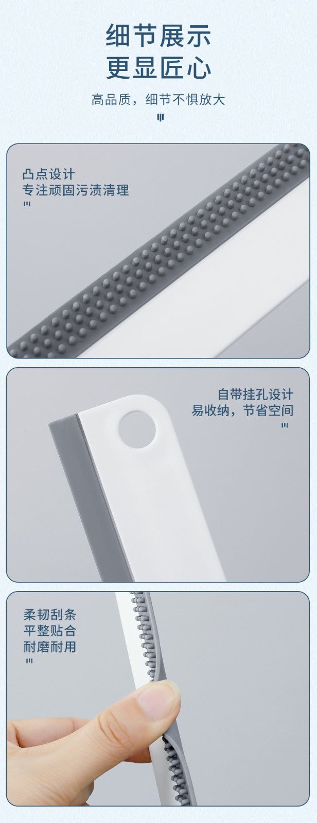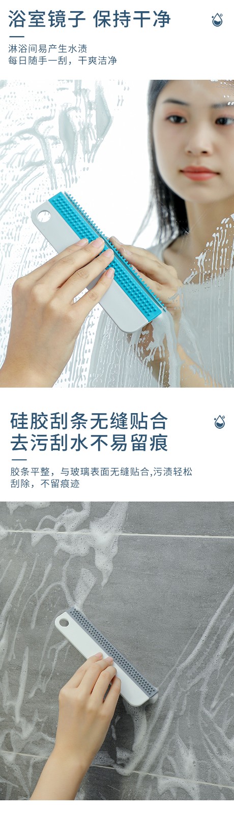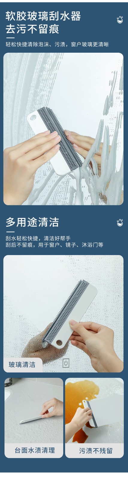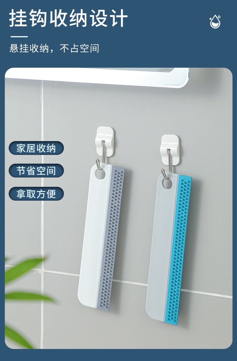可悬挂双面凸点去污台面刮水器硅胶台面刮水器迷你浴室玻璃镜子厨房茶具洗手台汽车卫生间刮水板