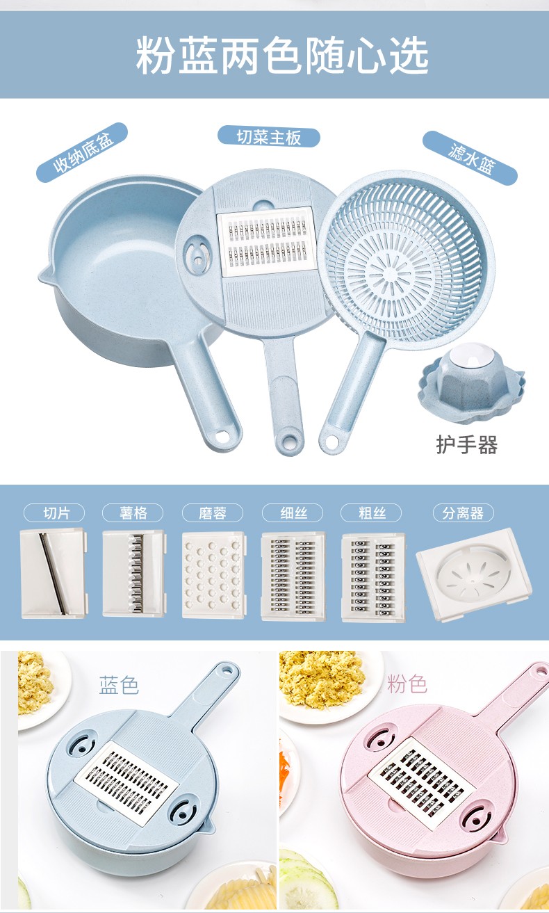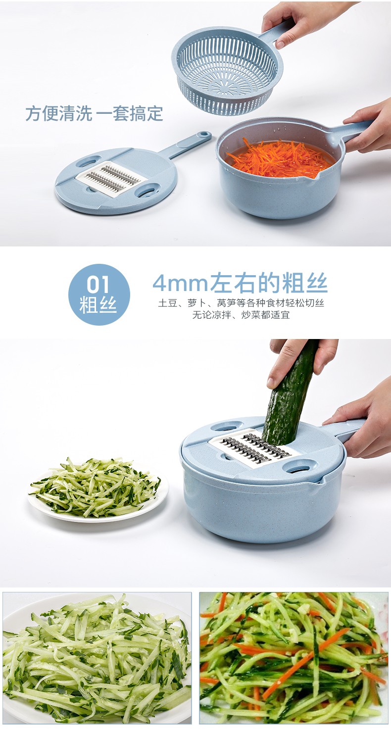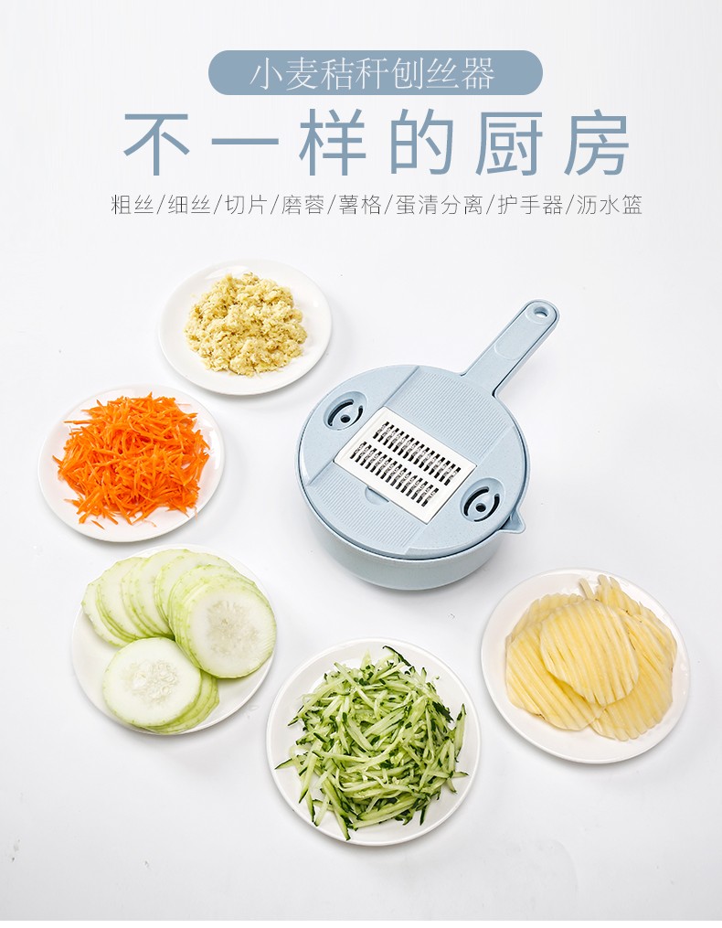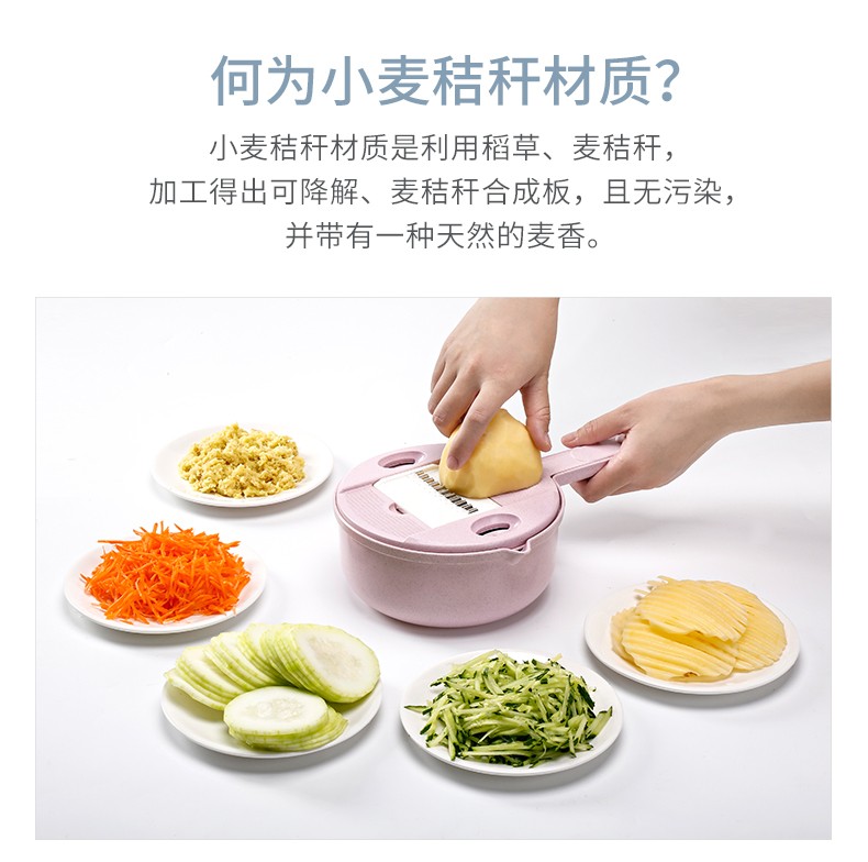 抖音圆形小麦秸秆多功能12件套厨房切菜丝神器切菜器带护手刨刀