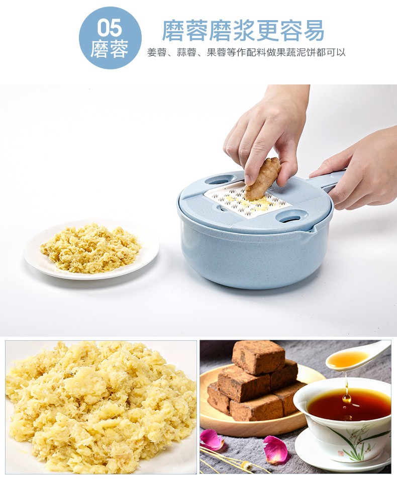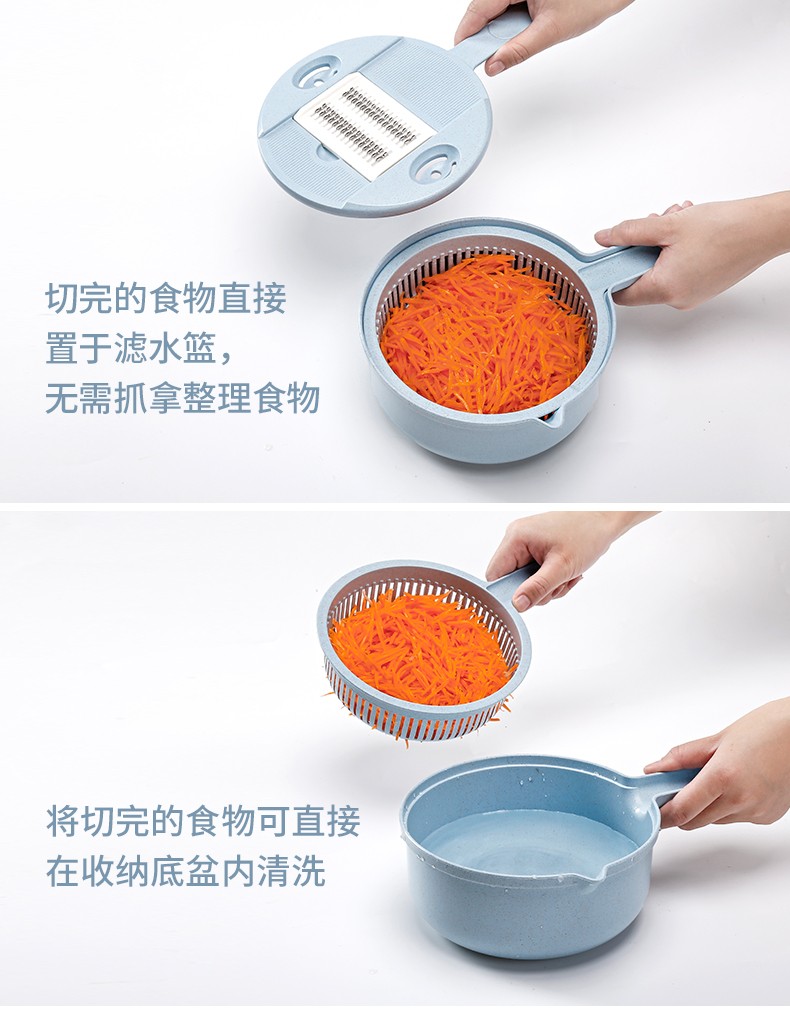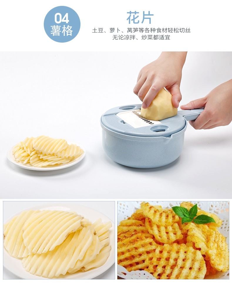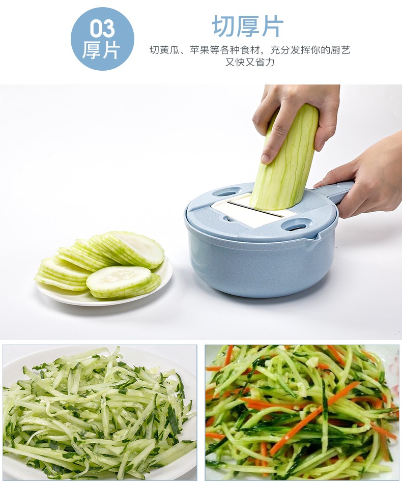 抖音圆形小麦秸秆多功能12件套厨房切菜丝神器切菜器带护手刨刀