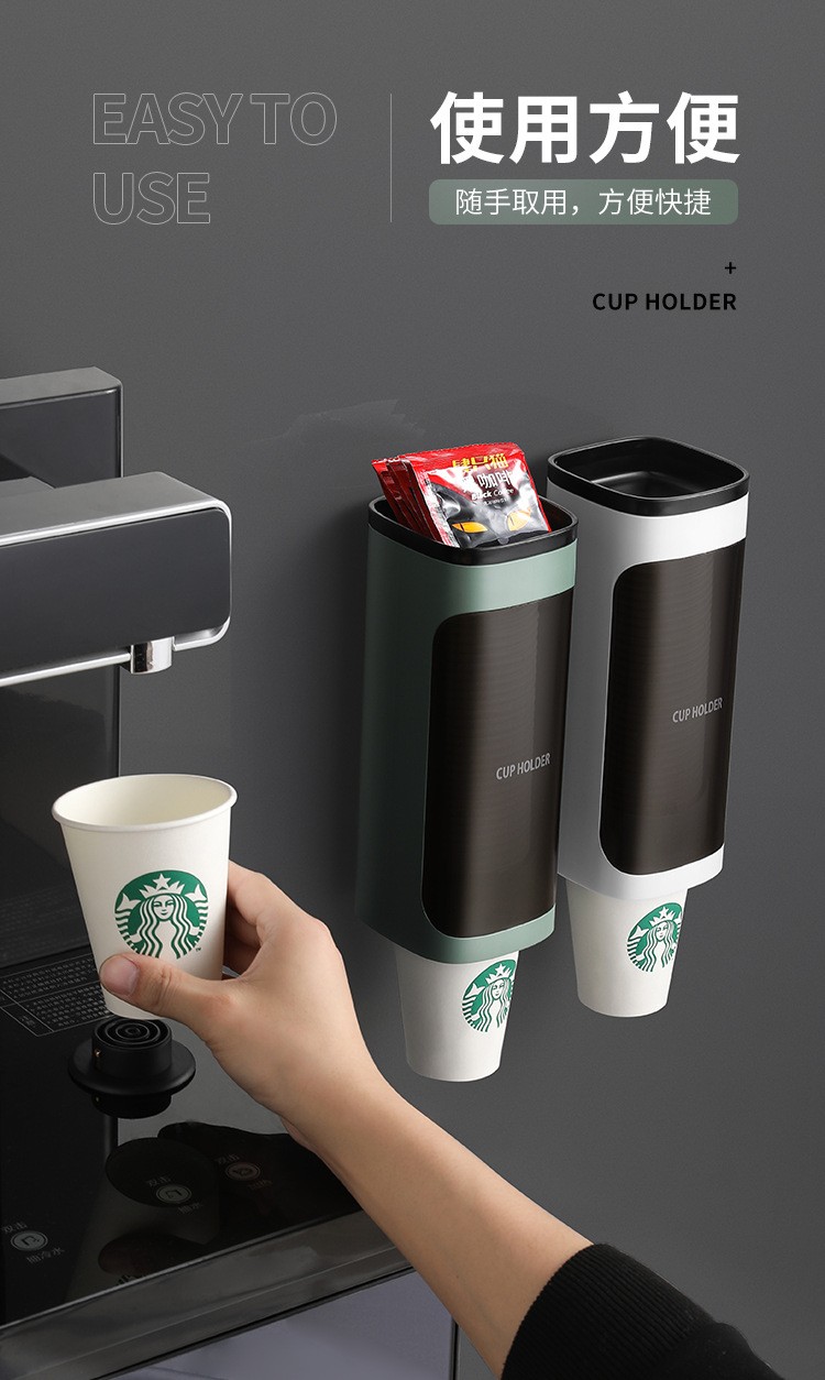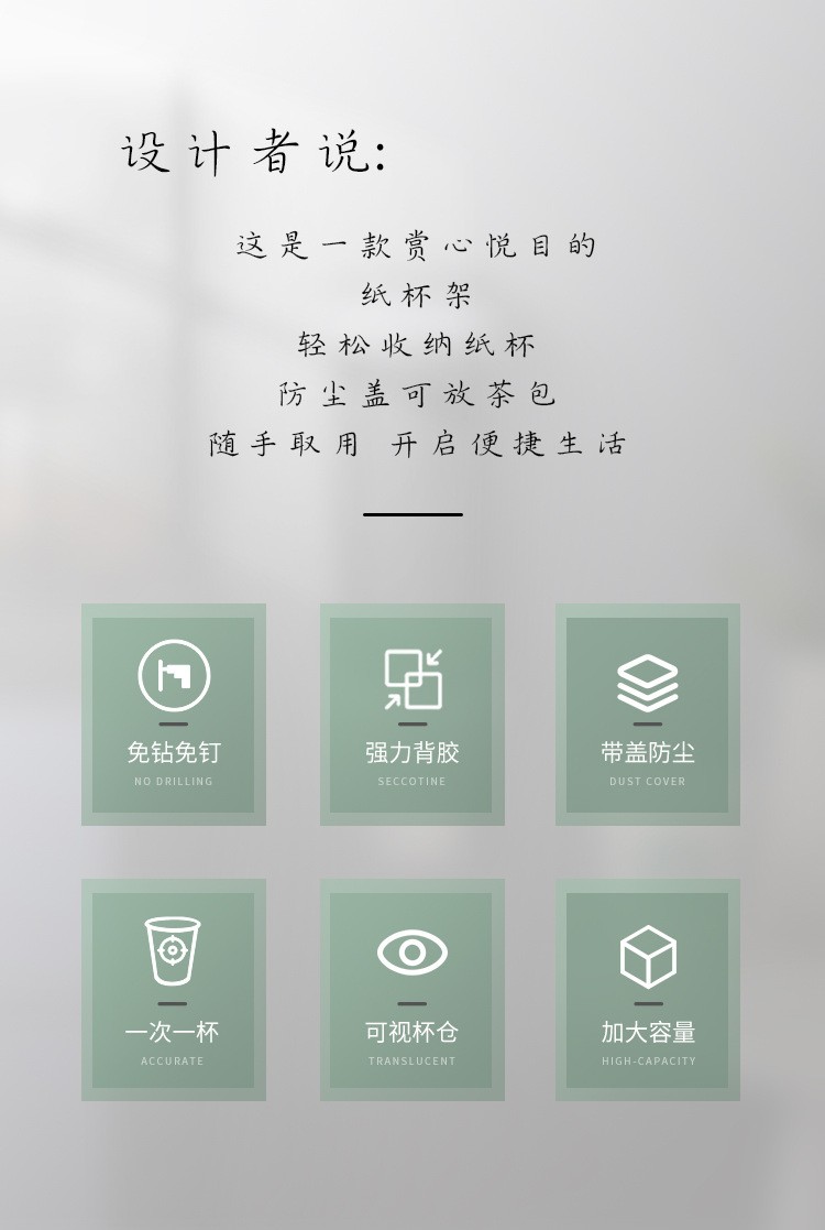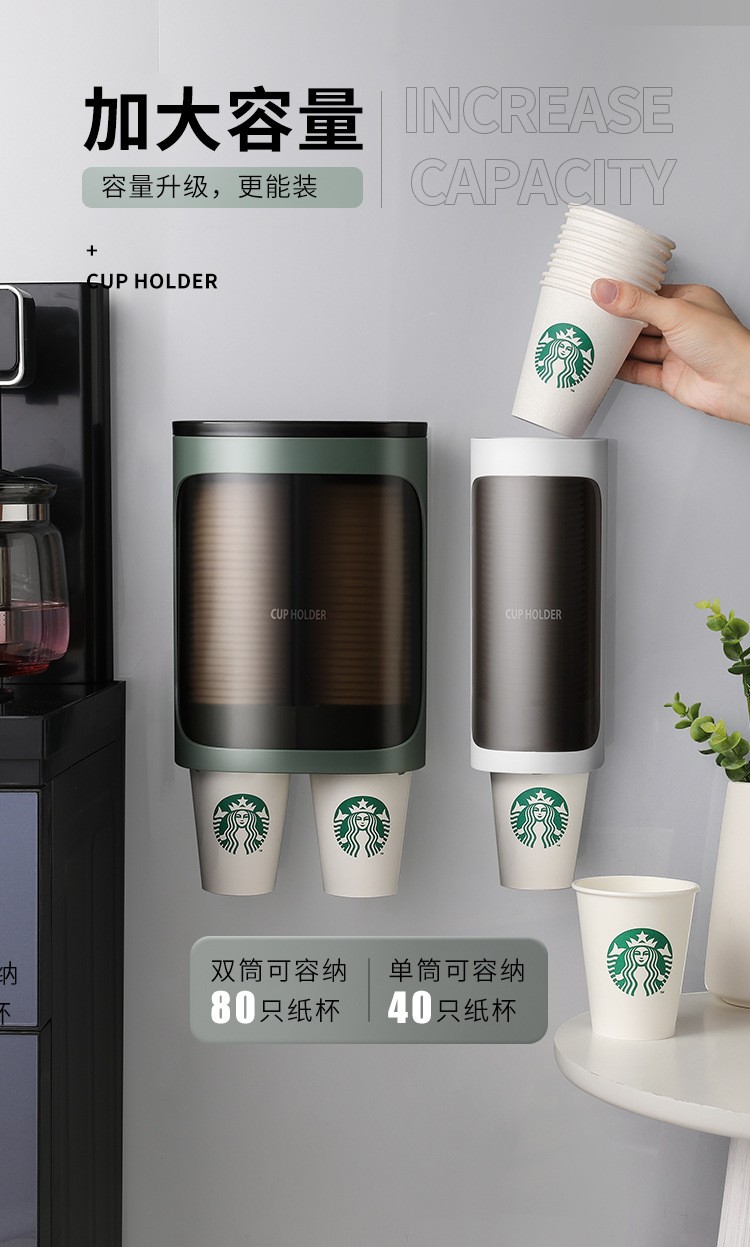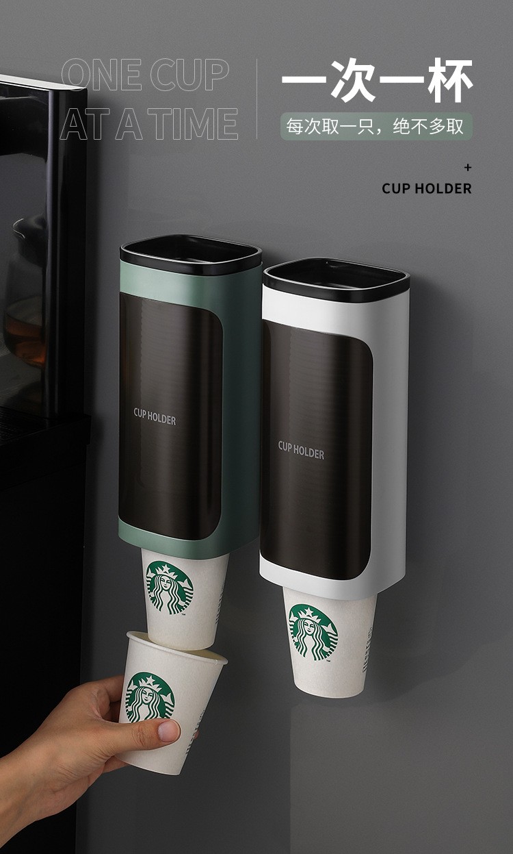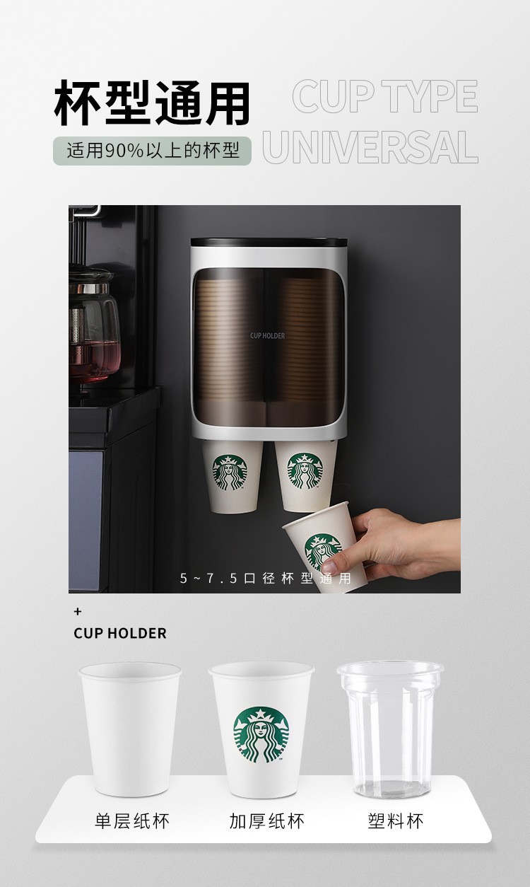 家用一次性取杯器免打孔饮水机杯架壁挂防水防尘水杯架双筒纸杯架