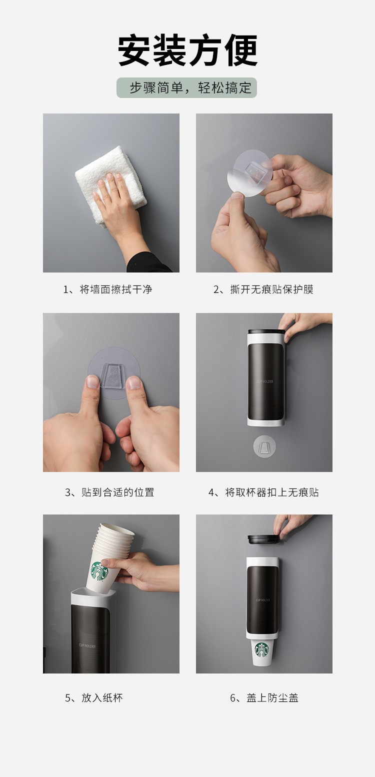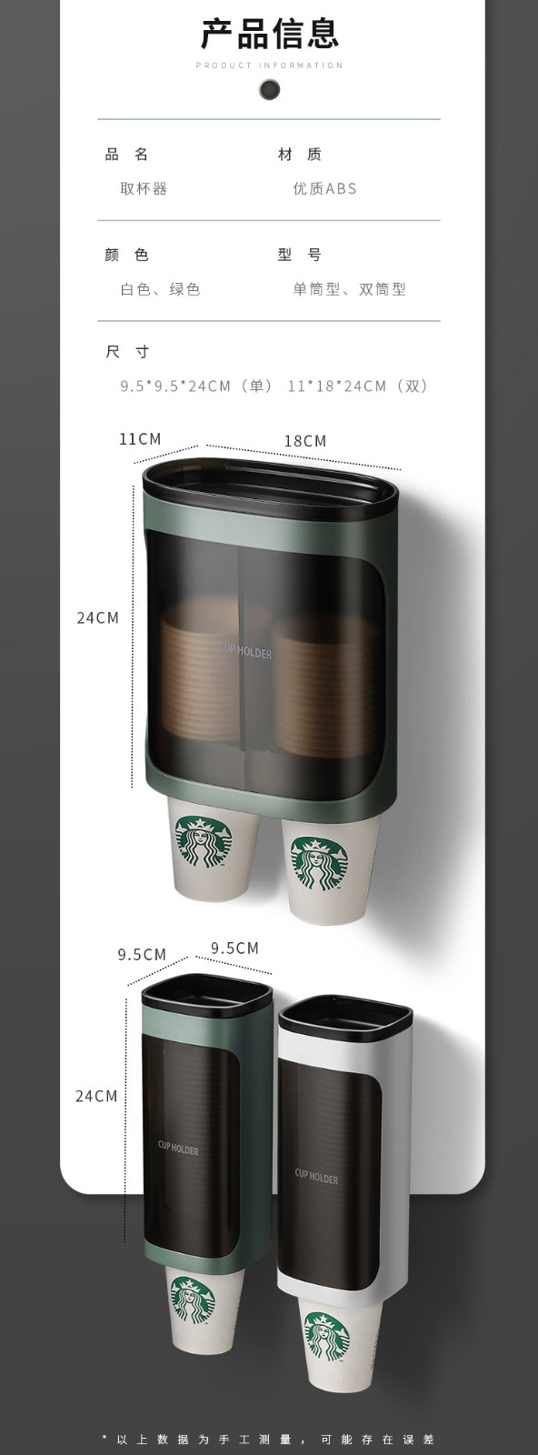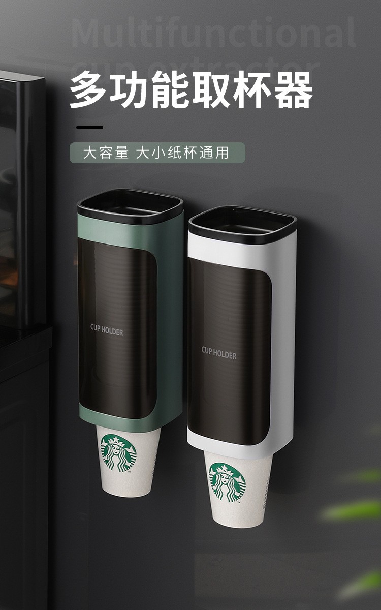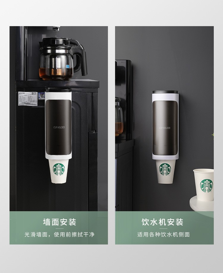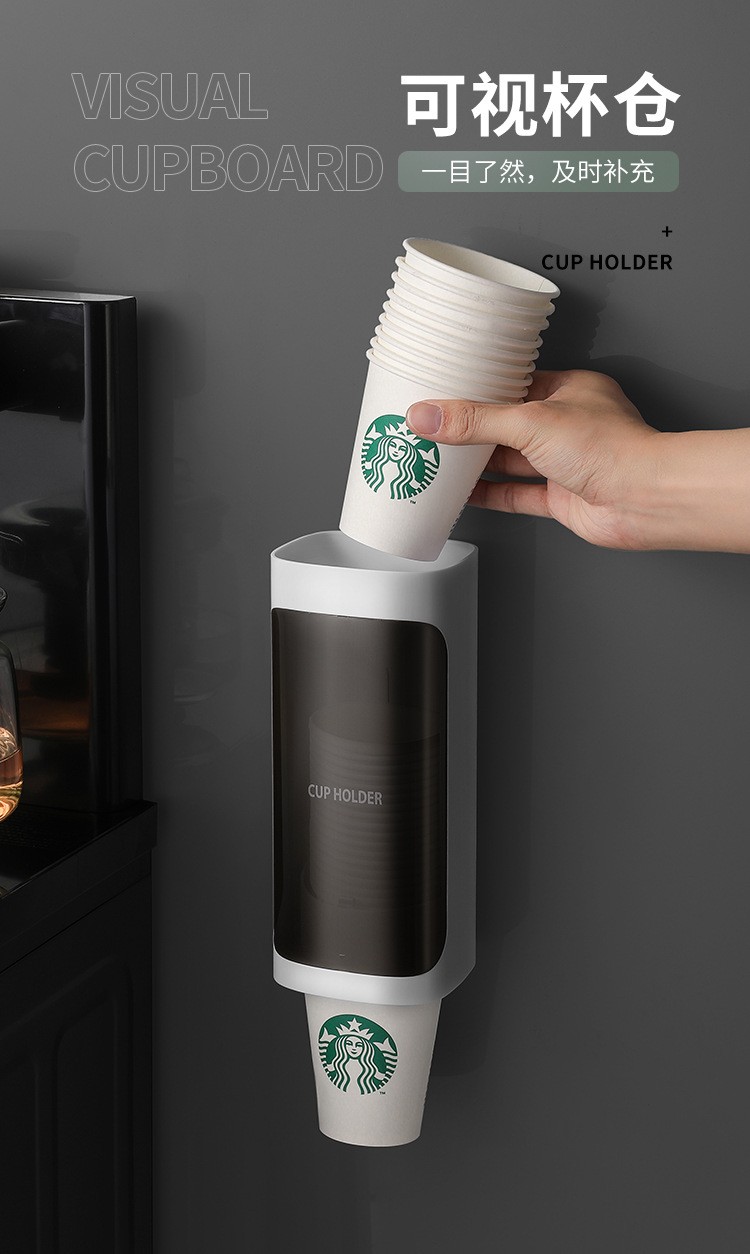 家用一次性取杯器免打孔饮水机杯架壁挂防水防尘水杯架双筒纸杯架
