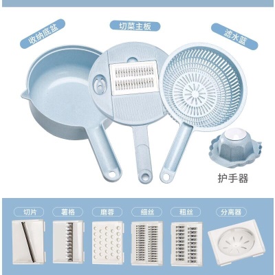 抖音圆形小麦秸秆多功能12件套厨房切菜丝神器切菜器带护手刨刀