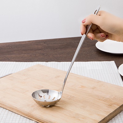 家居不锈钢汤勺加厚汤匙火锅勺长柄汤壳大汤匙全柄汤壳汤漏 漏勺款